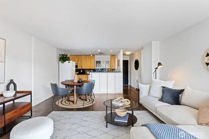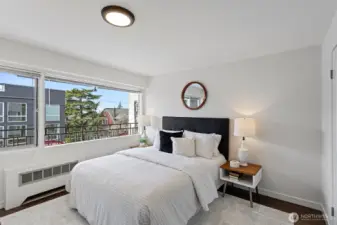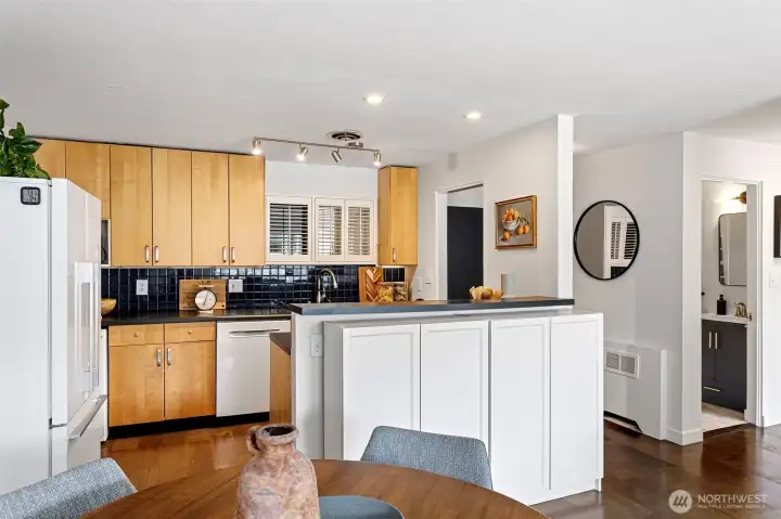 Discover the Toltec Condominium unit #12 on Capitol Hill, an inviting 2 bedrooms, 1bath home with 687 square feet its own outdoor entrance. Step inside to find a welcoming foyer perfect for hanging coats. The open kitchen seamlessly flows into a spacious dining and living area. The kitchen features include maple cabinets, a blue tile backsplash, dishwasher, induction range, track lighting, and a convenient W/D combo unit. Large windows in the living room lead to a covered balcony, ideal for container gardening, enjoying your morning coffee, or evening cocktails. Down the hallway is the bathroom with white tiled surround, ceramic floors, and 2 comfortable bedrooms. Engineered hardwoods, fresh paint and radiator heat throughout. This home is perfect for first-time buyers, those looking to downsize, or investors. The Toltec sits on a large lot surrounded by greenery and pathways that provide easy access to both 13th and 14th Ave East. You’re just 2 blocks away from Volunteer Park, 7 blocks from the Capitol Hill light rail, and surrounded by a vibrant array of restaurants, performing arts, shops, schools, healthcare, nightlife, and transportation in all directions. Pet friendly, bike room, storage, laundry & no rent cap. Don’t miss this wonderful opportunity!