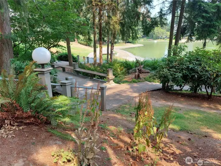 Experience the best of Eastside living in this beautifully updated condo. Soaring high ceilings with a skylight and floor-to-ceiling windows fill the space with natural light, while private nature views and a serene patio and garden create a peaceful retreat. Inside, enjoy a sleek, modern kitchen and an updated bathroom, everything move-in ready. Steps from your door, you'll find the main pool, fitness center with sauna, community center, tennis courts, RV/Boat storage, and a tranquil pond with walking trails. Downtown Kirkland and Redmond just 10 minutes away, and Seattle and Bellevue within 15, this location is ideal for anyone seeking quiet without sacrificing convenience. Set within a unique equestrian community, this neighborhood truly offers it all: walkable access to grocery stores, boutique bridal trail shops, and lively summer food truck events at the community center. Completing the package, this unit includes an assigned covered parking space and a large private storage unit. A rare blend of nature, community, and convenience; this one won't last! Pre-Inspection Available.