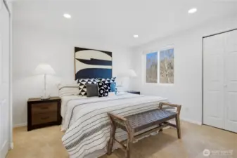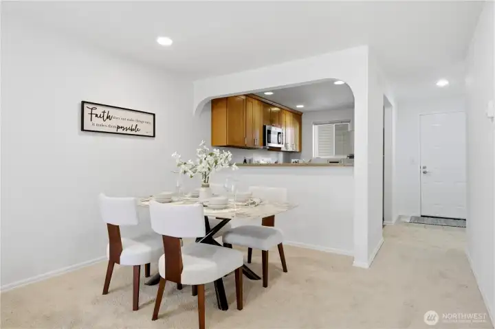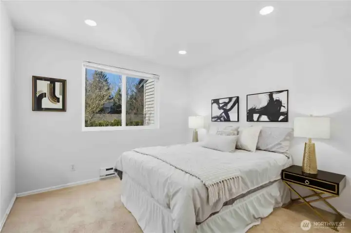 Modern top-floor condo located in Bellevue’s highly desirable Spring District neighborhood. This beautifully maintained 2 bedroom, 1.75 bathroom home offers 859 square feet of comfortable living space and backs to a peaceful greenbelt and creek, providing exceptional privacy and tranquil territorial views from the private balcony. The open-concept layout features a bright living and dining area with cozy fireplace, open kitchen with bar seating, and an in-unit laundry room with full-size washer and dryer. Two assigned parking spaces are included, one covered carport and one open space. Recent updates include fresh interior paint, new carpet, new doors, new dishwasher, new refrigerator, new water heater, and updated lighting, making this home move-in ready. Located just minutes from Downtown Bellevue and Bellevue Square, this home sits steps from the Meta Bellevue campus, Whole Foods, restaurants, shopping, and the new Spring District light rail station, offering easy access to Microsoft, Redmond, Seattle, and major employers across the Eastside. Convenient access to I-405, SR-520, I-90, and the Bellevue Transit Center. HOA dues include water, sewer, and garbage, plus access to the community pool and sport court. Located within the award-winning Bellevue School District. With no rental cap, this is an excellent opportunity for homeowners and investors alike.