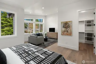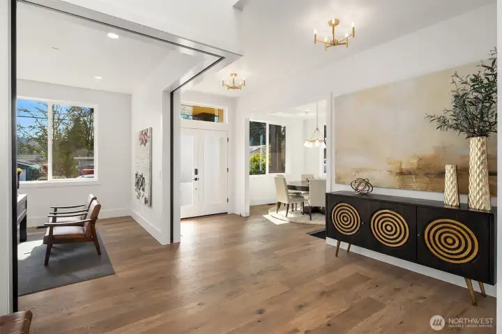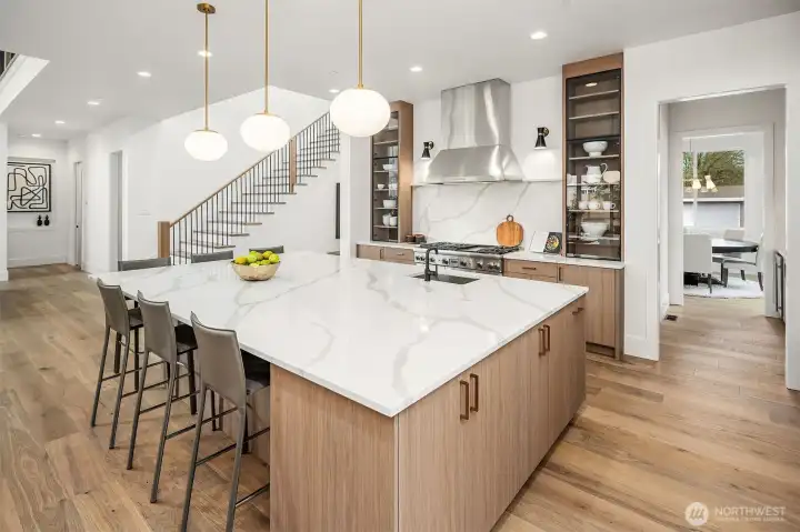 Sophisticated new construction with dramatic spaces in a desirable Bellevue neighborhood. Breathtaking in design and light-filled with every custom feature and room on your list. Designer finishes combine to define next level living in a friendly, bright and open layout. Striking 2 story window wall in the Great Room allows ample light to pour into the showpiece kitchen and dining area. The gourmet kitchen boasts a huge entertaining island with prep sink, walk-in pantry and butler’s pantry, contemporary cabinetry, and elite Thermador appliances. The luxurious and generously sized primary suite has a sitting lounge, built-ins and spa-inspired bath. Enjoy heated floors, freestanding Kohler soaking tub, walk-in shower with dual showerheads, dedicated makeup vanity, and two oversized walk-in closets. The Tribeca floorplan by Cade Hill homes is for those that need a little extra space: a main floor junior suite, main floor office, upper level bonus room, plus a guest bedroom wing that shares an additional flex space. Throughout the home you’ll find extended hardwood flooring, stylish wall textures, warm color palette, premium trim package, smart features, energy efficient and so much more! Sited on a premium lot with a level backyard, enjoy indoor/outdoor living with a covered patio and fireplace. Magical street with easterly Lake Sammamish Views. Ideally situated with seamless access to Seattle, Bellevue, Issaquah, Microsoft, just off I-90. Award winning Bellevue Schools.