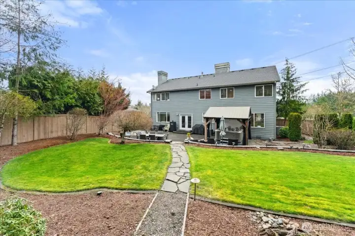 Experience one of the most coveted homes on Snoqualmie Ridge. An exceptional former John Day model residence set on a rare 15,550 sq. ft. estate lot, nearly double the size of neighboring properties. Perfectly positioned with views of the 9th & 10th fairways of The Club at Snoqualmie Ridge, this private retreat captures sweeping views of Mt. Si, Eagle Lake, and cascades, offering a lifestyle centered around one of Washington’s premier golf communities. The 3,225 sq. ft. home has been thoughtfully refreshed with extensive 2025 updates, including brand-new luxury hardwood flooring throughout the main level, a beautifully remodeled designer bathroom, fresh exterior paint, and professionally curated landscaping featuring a custom fountain and private hot tub which creates an outdoor sanctuary ideal for entertaining or unwinding after a long day at work or on the course. Inside, five spacious bedrooms and refined open-concept living spaces blend sophistication with everyday comfort. The gourmet kitchen flows seamlessly into light-filled gathering areas, perfect for hosting and modern living, while high-efficiency heating and A/C provide year-round comfort. Ideally located just minutes from top-rated Cascade View Elementary, the golf club, dining, and miles of scenic trails, this rare property offers privacy, prestige, and access to some of the best schools and lifestyle amenities in the state.