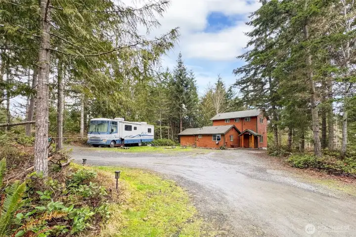 Set between Sequim and Port Angeles, this peaceful retreat sits on nearly 5 private acres and offers the space, flexibility, and natural beauty buyers seek in Olympic Peninsula real estate. Surrounded by evergreens and open sky, the property provides exceptional privacy while remaining close to town, trails, and coastal recreation.Inside, the home is filled with natural light thanks to abundant double-pane windows that frame the surrounding landscape. A cozy gas stove warms the second bedroom, while a ductless heat pump ensures efficient year-round comfort. The living area is enhanced by a projector home-theater system with a 12-foot screen—perfect for movie nights or game-day gatherings. The kitchen features warm birch cabinets and a functional layout ideal for everyday cooking or hosting.Outdoors, the acreage offers room to spread out with multiple outbuildings for storage, hobbies, or workspace. Dedicated space for RV parking or a boat makes it easy to enjoy the region’s marinas, lakes, and coastline. This property delivers a rare blend of comfort and Northwest lifestyle.A great opportunity for buyers searching for homes with space, serenity, and versatility on the Olympic Peninsula.