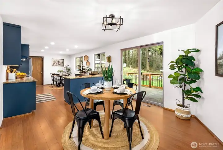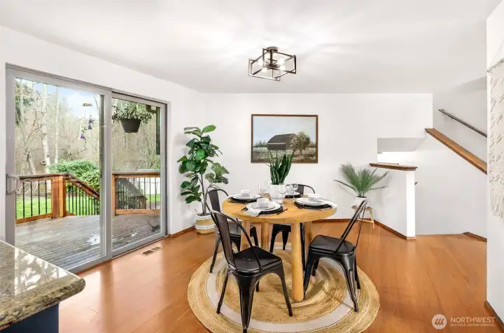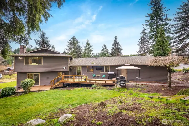 This ideally located Lynnwood home is perfectly positioned down a private drive with everyday conveniences, shopping, and dining close by. Commuting is a breeze with quick access to I-5, Mukilteo Speedway, and Highway 99, plus Boeing and Paine Field are moments away. Step inside to discover a bright yet cozy living room featuring a chic tile fireplace surround. The dining area flows seamlessly into the kitchen, offering ample storage and prep space, stainless steel appliances, and space for a morning breakfast nook. Enjoy outdoor living on the spacious back deck overlooking an open yard framed by towering trees, plus a fenced side yard ideal for pets, play, or gardening. Downstairs, you’ll find a utility and laundry room alongside a convenient ¾ bathroom. Completing the lower level is an oversized bonus room with a wet bar and direct outdoor access, an ideal setting for lively game nights and effortless entertaining. Upstairs, unwind in the oversized primary suite featuring dual closets and a private ensuite bath. Two additional bedrooms and a full bathroom provide flexible space for growing households, guests, or a home office.
