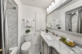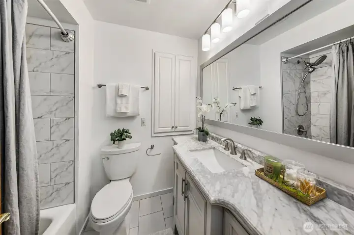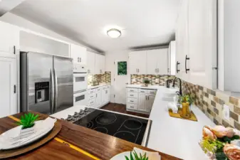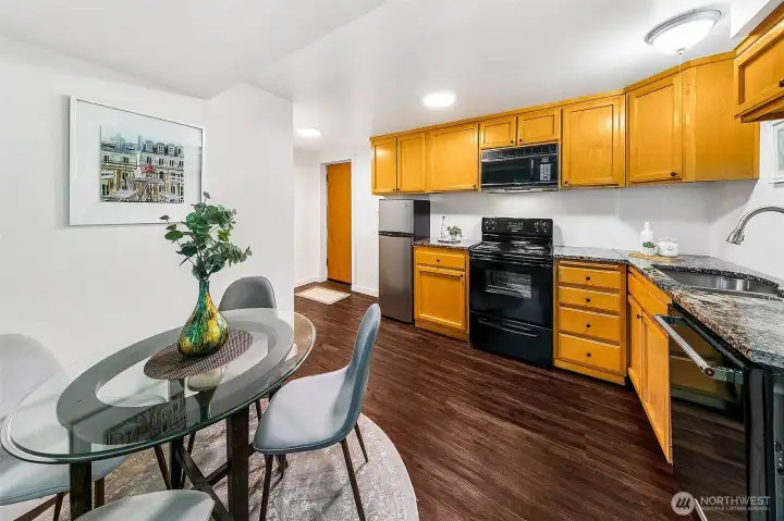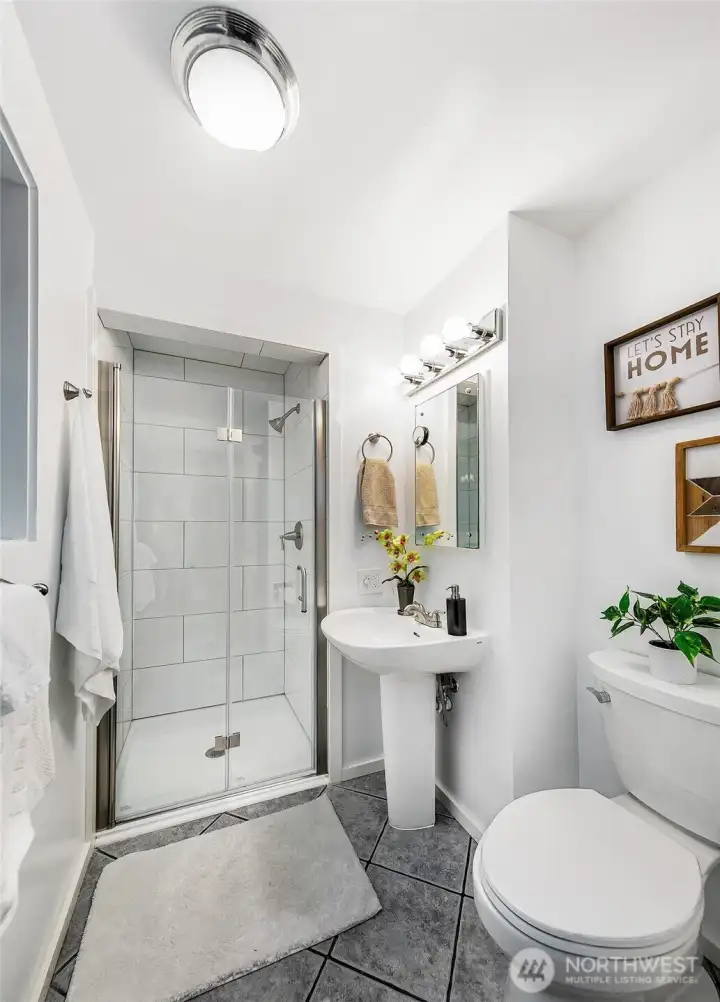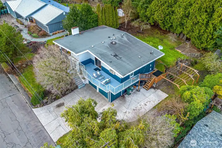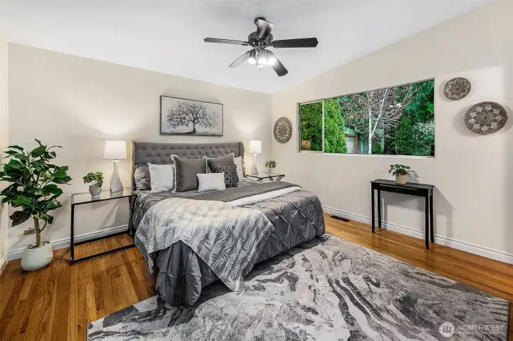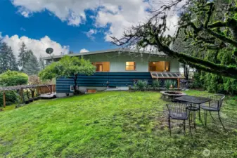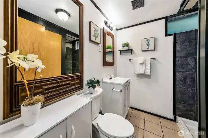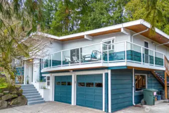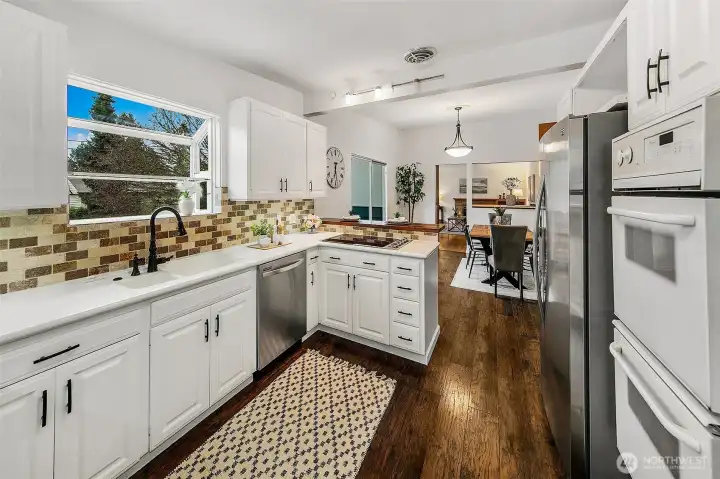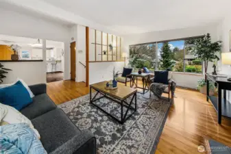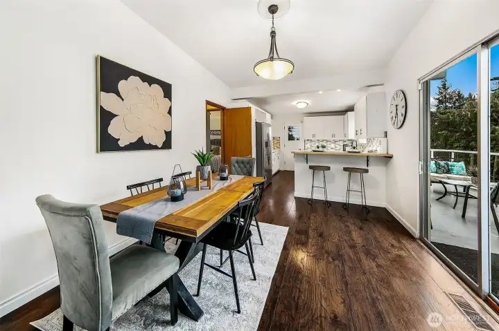 This stunning mid-century Kenlake home is move-in ready! Spacious living room with vaulted ceilings, stone fireplace, gleaming hardwood floors and big picture windows. Formal dining room extending to a lovely updated tiled kitchen, featuring an acacia wood bar seating space and tons of storage. Dining area opens to a large entertainment-sized deck with territorial and mountain views. Three spacious bedrooms all on same floor, including a primary bedroom with an additional 3/4 bath and a stunning updated full bath on main floor! The lower level with a separate entrance features a second kitchen complete with granite counters and a family room with additional fireplace/woodstove, two w/ds, additional 4th bedroom and lots of possibilities! Gas furnace and freshly painted throughout. There's also a 2-car attached garage, RV parking, driveway and curb parking. Park-like setting and privacy with mature landscaping. Outdoor firepit with patio, 50 year old grape vines, fruit trees, Italian Plum and Sardinian fig trees. Amazing location just minutes to shops and walking distance to Kenmore center. Pubs, eateries and the Burke Gilman Trail are just blocks away. Easy commute to either downtown Seattle or the Eastside! Direct transit line to Mountlake Terrace light rail.
