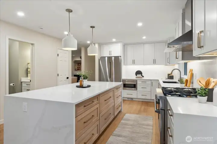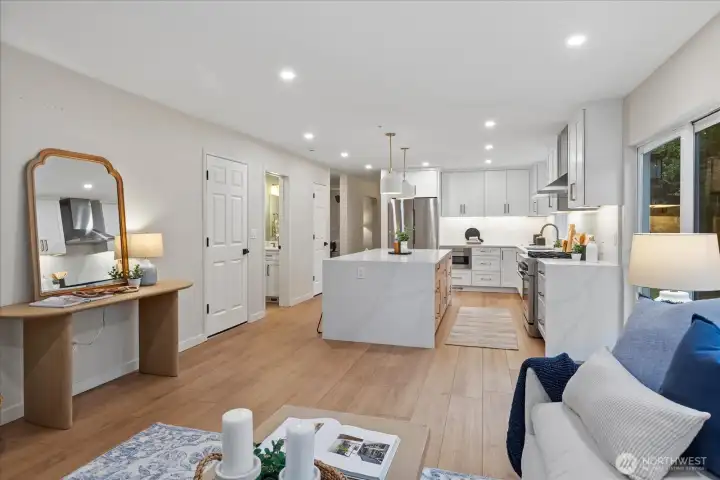 Nestled at the end of a private drive, this charming residence offers a rare combination of low maintenance living, inviting spaces, and true privacy—all while remaining just minutes from transit, neighborhood shops, and local dining. Thoughtfully remodeled, this home delivers an elegant, effortlessly comfortable atmosphere throughout. The chef’s kitchen was remodeled in 2025 and serves as the home’s centerpiece, featuring a large island, premium finishes, and abundant storage—an ideal setting for cooking, gathering, and entertaining. Every bathroom has been beautifully renewed to reflect the home’s cohesive, modern aesthetic. Upstairs, four spacious bedrooms and a convenient laundry room provide exceptional functionality. The luxurious primary suite impresses with vaulted ceilings and a spa-inspired bath, complete with a soaking tub perfect for unwinding at day’s end. A low maintenance yard and new roof in 2024 means you won't need to worry about a thing! A rare opportunity to enjoy peaceful, easy living without giving up convenience or connection to the community. Welcome home!