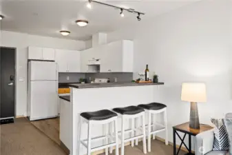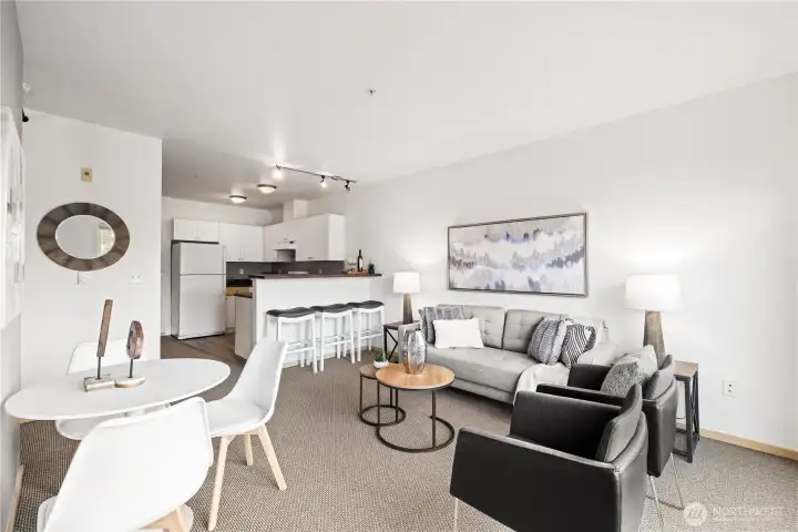 99 Walk Score! Rare opportunity to own this contemporary top-floor open-bedroom in the Press building with a balcony, and west-facing spectacular views. This condo is a turnkey unit with an abundance of natural light.Enjoy incredible amenities including a rooftop deck with BBQs and sweeping views, 24-hour fitness center, conference room, and secure underground parking with a dedicated space. Pet-friendly building with outdoor areas, newly remodeled common spaces, strong HOA, and no rental cap.Located in the heart of Capitol Hill where you are steps away from grocery stores, restaurants, nightlife, shopping, and light rail, with easy freeway access. A fantastic place to call home.