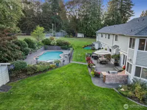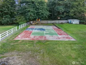 Beautifully maintained 2-story home set on a spacious lot in Graham, offering the perfect blend of comfort and outdoor living. A welcoming wraparound porch leads into a light-filled interior with hardwood floors and an open-concept layout connecting the kitchen, family room, and dining spaces, making it ideal for everyday living and entertaining. The kitchen features an island, eating nook, and seamless flow into the cozy family room with gas fireplace. Upstairs, the generous primary suite offers a private balcony and a 5-piece bath, alongside large secondary bedrooms and a spacious bonus room with built-ins, perfect for hobbies, work-from-home, or flex space. The backyard is designed for entertaining and recreation with an in-ground pool, spa, sport court, patio, and plenty of room to relax and gather. Additional highlights include a three-car attached garage, ample extra parking, and a composition shingle roof replaced approximately 5 months ago. Enjoy a peaceful setting with convenient access to nearby amenities!