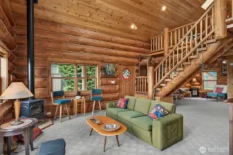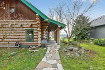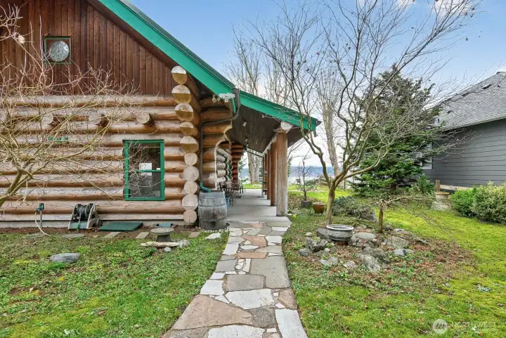 Come and enjoy this beautiful log home sitting on the bluff above Tillicum beach! Incredible views of Mt. Baker, Port Susan Bay, and the Cascades. You can enjoy the communities beach and the use of the boat launch as well. The sunrises are stunning! The home has been meticulously cared for inside and out. Large concrete patio facing the water and a large covered patio at the entrance to the main door. The interior has a large open, yet cozy, feel with several areas of living space. The main level includes the living room, kitchen with eating space, full bath, bedroom, and large open den. Also attached is a large artist studio/workshop with 3/4 bath. Upstairs is a large open bedroom with 2 large closets. Large evergreen trees, fruit trees greet you. Includes a high quality knotty pine storage building as well. Island living at its best!