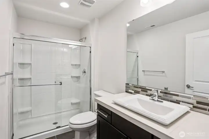 Modern comfort meets peaceful surroundings in Monroe Woodlands. This well-designed 5 bed, 2.75 bath home includes a main-level bedroom and ¾ bath, ideal for guests or flexible living. The open layout brings together the living room with gas fireplace, dining area, and kitchen for easy everyday living and entertaining. The kitchen features stainless steel appliances, quartz countertops, a spacious island, and pantry. Upstairs you’ll find a generous primary suite with a 5-piece bath, large shower, and walk-in closet. Three additional bedrooms, a full bath, bonus room, and laundry are arranged in a thoughtful circular floor plan. Situated on one of the largest lots in the neighborhood, the fully fenced backyard backs to green space offering extra privacy. Community amenities include playgrounds, parks, soccer field, and walking trails. Convenient to outdoor recreation with an easy commute.