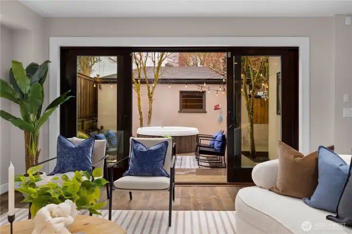 New price for this exceptional home in North Admiral. Discover comfort, elegance & convenience in this beautifully maintained West Seattle home. The thoughtfully designed layout offers open concept living with contemporary architecture that brings in tons of natural light and gives an expansive feel. The main level has a well-appointed kitchen, a large living and dining space, a bedroom & full bath. Upstairs you'll find two additional bedrooms and a beautifully updated 5-piece bath. There’s a generous loft space that’s perfect for a family room and a home office. A private deck provides the ideal setting for morning coffee or unwinding in the evening, with peek-a-boo views adding to the appeal! On both levels, the rich hardwood floors add warmth throughout. Enjoy your own private retreat complete with multiple decks, patios, lush gardens and a relaxing hot tub. Park in the one-car garage or the off-street parking spot out back. Ideally located minutes from the Admiral District & Alki Beach, with easy access to downtown Seattle via the West Seattle Bridge. Close to shops, grocery stores, cafés, parks and schools. This home provides a rare opportunity to experience tranquility and quintessential West Seattle living!