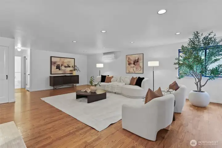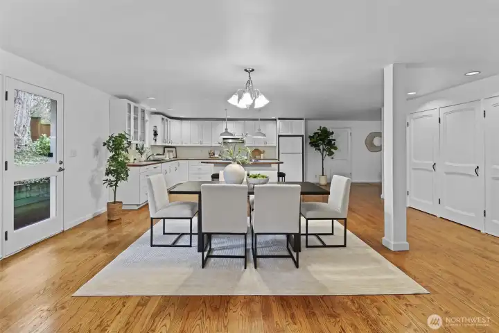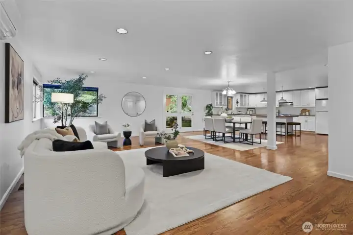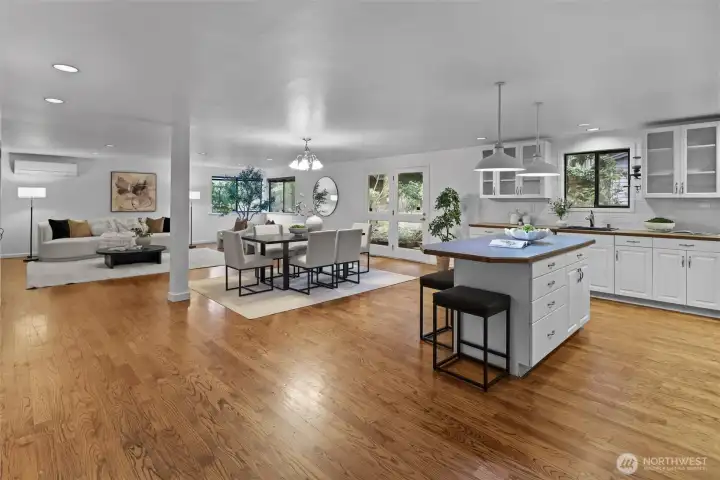 Spacious Kirkland home ideally located on a corner lot at the entrance of a quiet cul-de-sac. This house is move-in ready yet has so many options to expand. The large main floor features open-concept living spaces perfect for everyday living & entertaining. Spacious open kitchen with large island. A main-floor office, bedroom, & full bath provide flexibility for guests, multigenerational living, or working from home. Upstairs you'll find three additional large bedrooms, a full bathroom, and a generous unfinished storage space ready to be transformed into a private primary suite or bonus room. The additional 998-square-foot basement is ready for you to finish as a fantastic rec space or any space you can imagine. The polished concrete floors are plumbed for hydronic radiant floor heating. This would make a great theater room or rec space. This spacious corner lot offers incredible potential. With approximately 12,000 square feet, there may be opportunities to add a detached cottage, build a two-car garage with an apartment above, creating additional living space for extended family or rental income. The expansive lot provides many possibilities—buyer to verify development options. Conveniently located with easy access to I-405 and close to parks, all 3 schools, Costco, Grocery store, Google, DT Kirkland, Lake Washington & Bellevue. Situated within the highly rated Lake Washington School District and just 3 blocks to Franklin Elem. Home is pre-inspected & sewer line scoped.