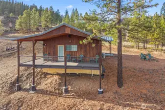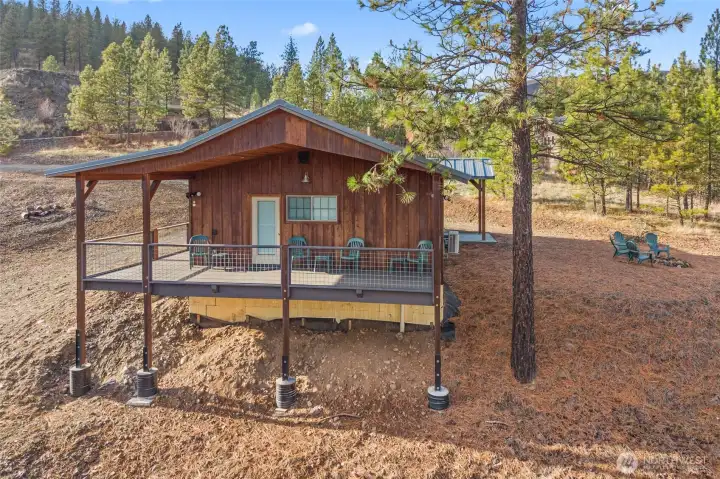 Experience breathtaking views from every angle of this custom-built cabin/garage. Property is perfectly set up to enjoy while you build or as a recreational spot. Built in 2014 & exceptionally well maintained offering 1 full bathroom, an open concept living area, eat-in kitchen with electric/stainless appliances, stacking washer & dryer, wood burning free standing stove & mini split for cooling/heating, two 8' insulated garage doors, two 200 amp services for the cabin & future home, sits upon a 9' concrete crawl space, complete with a fresh coat of stain. Septic approved for a 4-bedroom home that can be built on the clearing just below the large covered deck. Hawk Creek Estates offers secured entry, Lodge, seasonal pool & sports court.