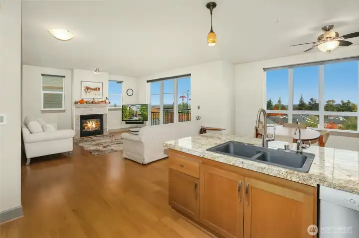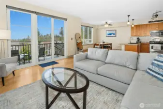 Welcome to this upgraded 2-bedroom Starpoint VIEW home! Impeccable 3rd-level residence featuring stunning westerly views of Bellevue, Olympic Mountains, glowing sunsets, plus northerly views of the Cascade Mountains including Mt. Baker. Enjoy the best views without the west facing summer heat exposure and enjoy your evening glass of wine upon your very own view deck! This beautifully maintained home offers numerous upgrades, including cabinet pull-outs with soft-close features at kitchen, a Franke sink, and a reverse osmosis water system. Other features include a remodeled primary bath, newer carpet, solar shades throughout plus blinds, upgraded light switches, custom closet updates, and an electronic keyless entry. Starpoint provides secured underground parking and dedicated storage. Comes with parking stall #2, right next to elevator. Enjoy an unbeatable Issaquah Highlands location near the best parks, trails, school, shopping, dining, cinema, and convenient I-90 transit. Award-winning Issaquah School District. HOA dues cover insurance, gas, garbage, water, sewer, and all exterior maintenance. ADA compliant unit, no rental cap, all appliances included.