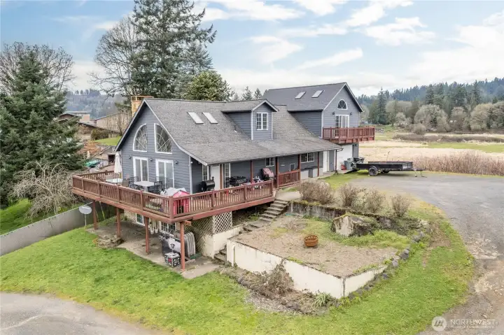 Private West Longview 3 bed 2 bath home! 2,490 sq ft home with vaulted ceilings. Main level boasts open kitchen and living room, 2 beds and a bathroom. Primary w/ensuite, walk in closet and bonus room are on the upper level. Day light basement with large open room. Exterior has a spacious deck, patio, play area, and rv parking with hookups. Large 26,000 lot for gardening or potential shop. Close to shopping, schools and more!