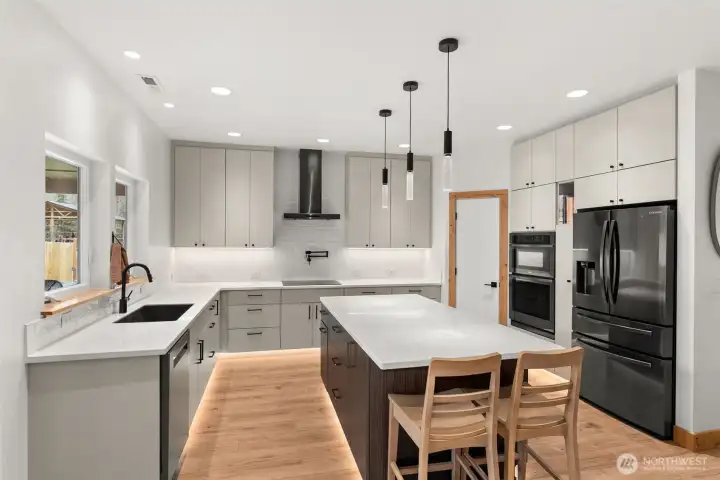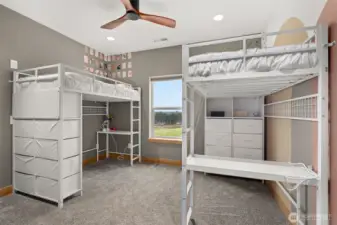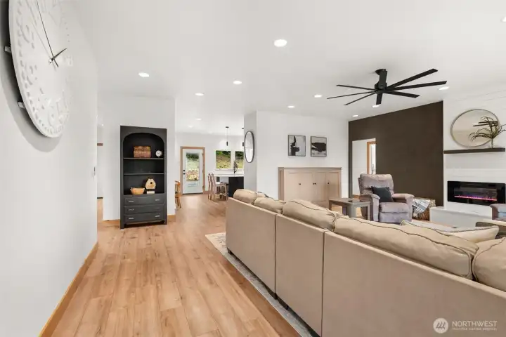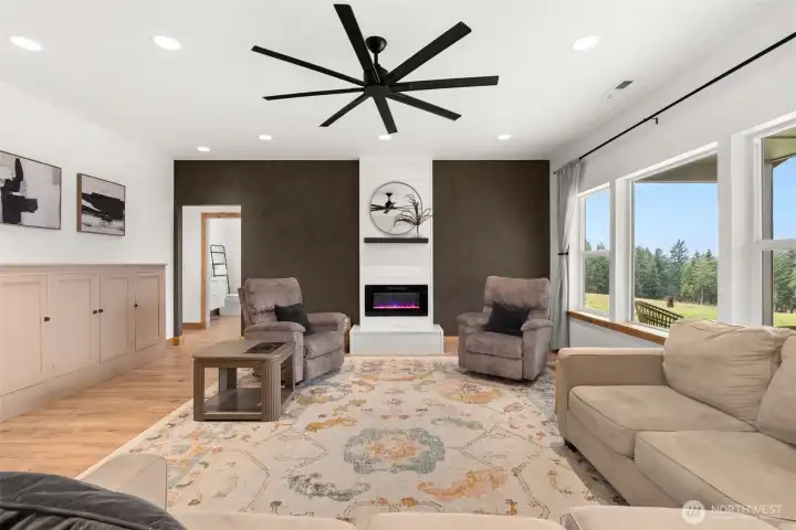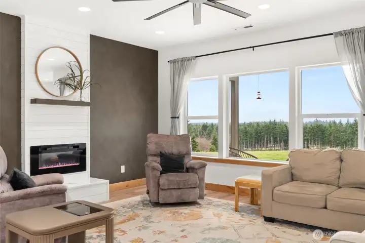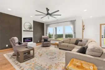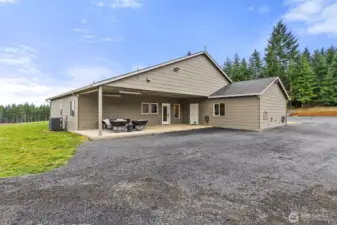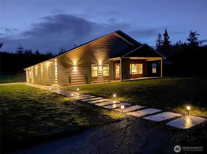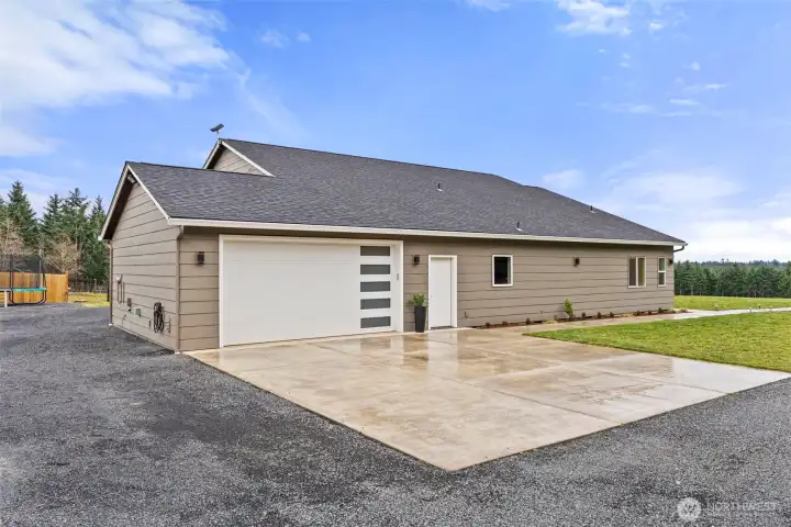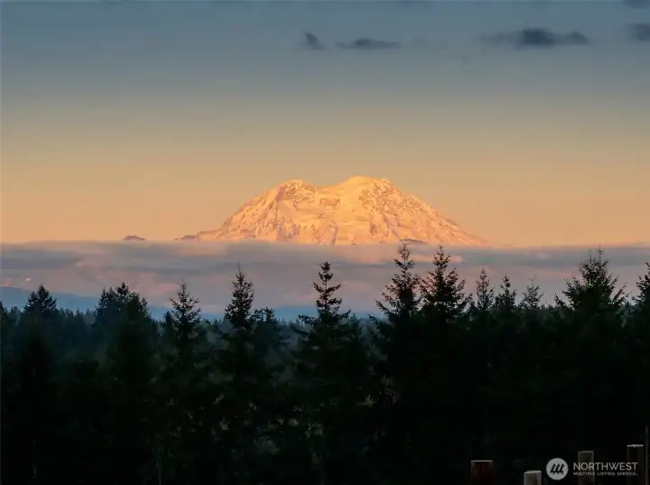 Welcome to this beautiful nearly new one-level ranch home offering comfort, space, and incredible views. Built in 2022, this nearly 2,300 sq ft home is thoughtfully designed with a functional layout and modern finishes throughout. The spacious living room features a cozy fireplace and windows that take full advantage of the spectacular views of Mount Rainier. The modern kitchen is a standout with a large island, pantry, wall oven, cooktop with pot filler, tile backsplash, coffee bar, and stainless steel appliances—perfect for both everyday living and entertaining. The home offers an ideal split-bedroom floor plan, with two bedrooms and a full bathroom on one side of the home, while the private primary suite sits on the opposite side. The oversized primary bedroom includes a luxurious ensuite bathroom with a walk-in shower, two-person jetted tub, double vanity, and a walk-in closet. Additional spaces include a den/office and a well-appointed laundry room with abundant cabinetry for storage. Step outside to enjoy the peaceful setting from the covered front and back patios, with patio heaters on the back patio for year-round comfort. The property is partially fenced and offers very usable land with trails winding throughout. A charming rope tire swing hanging from a beautiful old oak tree adds to the property’s character and outdoor enjoyment. This property offers the perfect blend of modern living, privacy, and stunning natural surroundings.