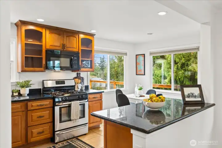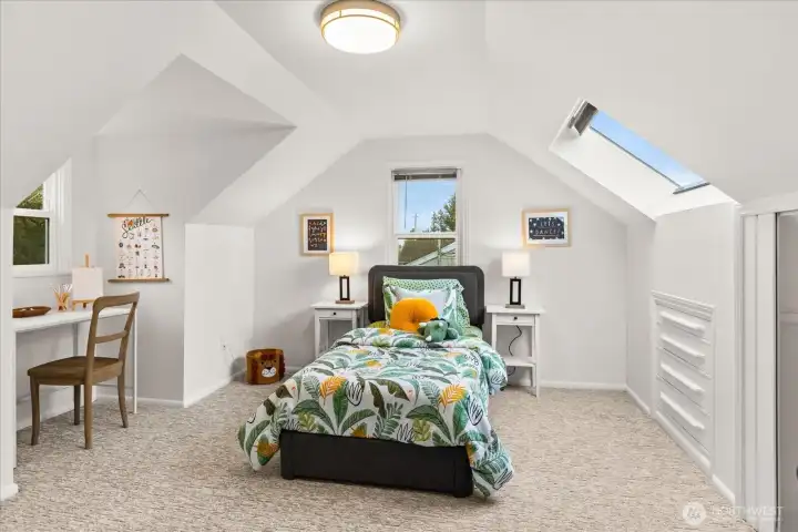 Charming & undeniably special! Fall in love with this light-filled Cape Cod home nestled on a quiet Broadview street, w/scenic Puget Sound & Olympic Mountain views. HW floors flow throughout the main level, where you'll find a spacious primary bedroom, large formal dining & an expansive kitchen w/breakfast nook. Step outside to the covered patio & entertainment-sized deck, perfect for evening dinners & soaking in stunning sunsets. Upper level features two generously sized bedrooms, along with attic/storage space. The lower level offers tremendous flexibility, including a family room or additional office space, plus a fully self-contained MIL suite w/separate entrance, full bath & W/D - ideal for extended family or potential rental income. Attached exterior storage space completes the package. Big-ticket items complete - including new windows (2023), new roof (2025), updated water heater, fresh interior paint, and new upper-level carpet. Large lot w/gated alley access and abundant off-street parking. Conveniently located near Carkeek Park's trails & beach, multiple restaurants, coffee shops, the Broadview Tap House & more. A rare blend of character, views, and versatility. Pre-inspected