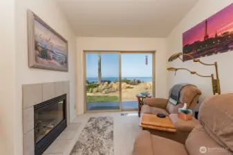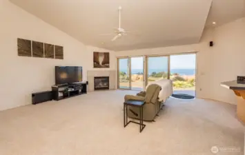 Wind through a tree canopied drive then out into the sunshine and panoramic water views. This custom home features a layout that lends itself to entertaining, a kitchen with great flow and even better views, and an art studio which is a beautiful creation space complete with storage, counter, and sink. The main bedroom suite has a separate seating area with dual-sided, propane fireplace and views of the Strait of Juan de Fuca. Light, bright, and open rooms with the sea beckoning through windows invite you to come and live your best life with the smell of salt air just outside your door. Revel in the views and sounds of sea birds from the hot tub, deck, or sitting bluff-side.