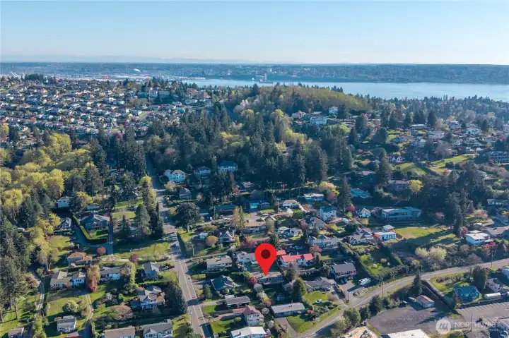 First is the view, you see Puget Sound looking north from this vantage point in North-East Tacoma between Dash Point and Dash Point park. This rambler with a daylight basement is ideal for building equity while creating your dream home. The mail level features spacious living and dining area with a fireplace. Downstaris if a big recreation room also with a fireplace. Two bedrooms on each level. This is a big lot with a detached garage plus a playhouse or home office space. It is difficult to find homes with Puget Sound Views of this size in this price range. That is why it would be a good idea to take a look at this home as soon as possible.