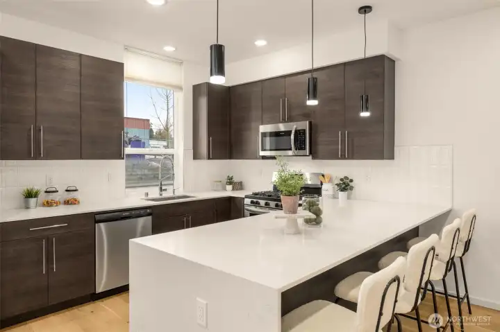 Welcome home to this stunning West Seattle gem in the heart of Highland Park! Built in 2020 and thoughtfully designed for modern living, this 3-bedroom, 2.5-bath residence sits on a quiet street just moments from neighborhood favorites. Enjoy weekends at the nearby Delridge Farmers Market, explore local dining and shops, or head a few blocks to Westcrest Park for scenic trails, open green space, and playgrounds. Inside, you’ll find a bright, open layout with stylish finishes and comfortable living spaces. The spacious primary suite features a walk-in closet and a private bath, creating a relaxing retreat at the end of the day. Cozy up by the gas fireplace during cool Seattle evenings, and stay comfortable year-round with air conditioning for warmer months. The beautiful kitchen features quartz counters, a large breakfast bar and stainless steel appliances. Love to entertain? The rooftop deck offers the perfect setting for gatherings, sunset views, and enjoying the best of Northwest living. This is modern Seattle living at its finest.