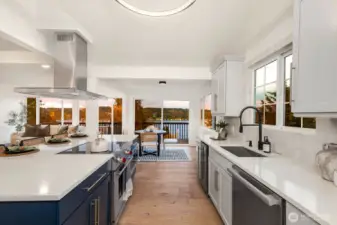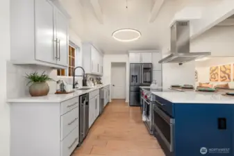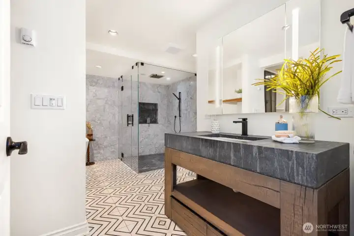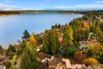 Breathtaking, unobstructed sweeping views of Lake Washington and Mt. Rainier create a truly spectacular backdrop for this exceptional Matthews Beach residence. Bathed in natural light, the home welcomes you with a grand foyer and soaring vaulted ceilings, opening to an expansive floor plan thoughtfully designed to showcase the remarkable scenery from nearly every room. The beautifully reimagined kitchen serves as the heart of the home, featuring top-of-the-line appliances, an oversized island with generous seating, and seamless flow for both refined entertaining and everyday living. Extensive high-end updates include French white oak engineered hardwood flooring throughout, fully renovated bathrooms, a newer roof, and ductless HVAC with air conditioning for year-round comfort. Ideally positioned on a quiet, private end-of-road lot, the home offers a spacious yard and expansive view deck perfect for relaxing or entertaining while taking in the iconic Pacific Northwest landscape. Just moments from the Burke-Gilman Trail and minutes to University Village and UW, this home offers a rare blend of elevated design, privacy, and unparalleled views.