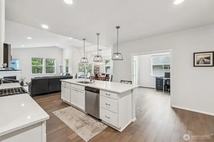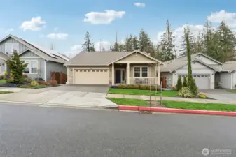 Beautiful 2020 built rambler backing to a peaceful greenbelt in the 55+ Woodside community. Inside, an open-concept layout is designed for easy living, with a spacious kitchen featuring a large island that flows into the dining area and great room with a cozy gas fireplace, perfect for everyday living or entertaining. The spacious primary suite includes an ensuite bath and walk-in closet. A second bedroom and full guest bath featuring a Kohler walk-in bath/shower provide comfortable guest space, while the third bedroom with French doors offers flexibility as a home office, den, or additional bedroom. Enjoy year-round comfort with central A/C and the efficiency of a tankless water heater. Step outside to a private backyard with a tranquil greenbelt setting and neighborhood trails nearby. HOA maintains the landscaped and irrigated yard for low-maintenance living.