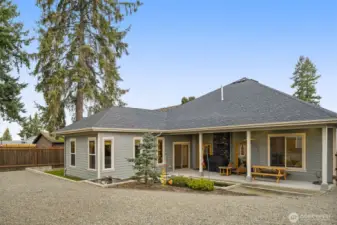 Custom-built and thoughtfully designed, this exceptional home sits directly across from the Church Lake area of Lake Tapps and includes coveted boat launch and beach rights. Quality craftsmanship is evident throughout, with bamboo floors, real fir doors and trim, soundproofed walls, and generator with gas already in place. The open-concept layout is ideal for both daily living and entertaining. The chef’s kitchen features a gas range, prep sink, waterfall granite island with finished ends, convection microwave, and a walk-in pantry, all flowing seamlessly into the dining and living spaces. The light-filled living room offers tray ceilings, a floor-to-ceiling stone fireplace, and dual doors that open to the backyard. The primary suite is a true retreat with patio access, double walk-in closets, and a spa-inspired bath featuring dual vanities, a soaking tub, and a large tile shower with double heads and a ceiling-mounted rain shower. Additional bedrooms are generously sized and connected by a Jack-and-Jill bath with beautiful tile finishes. Installed a generator that's hooked up to natural gas. Outside, enjoy a fully fenced yard with a covered patio, gas stub for BBQ, and a tranquil water feature. A fully finished three-car attached garage, plus a detached 576 sq ft two-car shop with 220-volt power, and RV parking with power, water, and sewer hookups complete the package. Optional membership to the private Church Lake Community Park offering lake access, dock, & boat launch.
