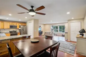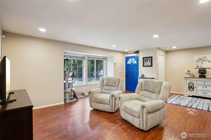 Set on an oversized corner lot, this well-maintained rambler offers comfort, style, and versatile living space inside and out. A fully remodeled kitchen is the centerpiece of the home, showcasing updated cabinetry, granite slab countertops, and matching stainless GE appliances that bring both beauty and functionality to everyday cooking and entertaining. Durable laminate flooring flows through the main living areas, complementing the bright formal living room highlighted by canned lighting, crisp white millwork, and updated doors. The home features a spacious primary bedroom with a private bath plus two additional bedrooms, creating a flexible layout suited to many living arrangements. A second living area provides even more room to spread out, complete with a cozy wood-burning fireplace. The family room opens directly to a fenced backyard designed for relaxation, offering a park-like atmosphere perfect for outdoor enjoyment, gardening, or gatherings. The large corner setting provides excellent space for RV parking and additional vehicles, making storage and access simple. All of this is located in a peaceful setting that offers a quiet atmosphere while still providing convenient access to everyday amenities.