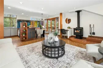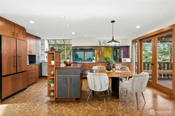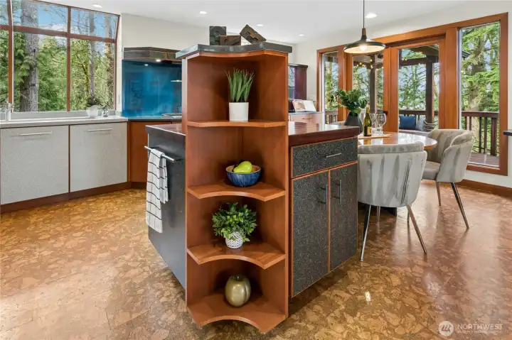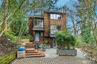 Tucked gracefully among the evergreens of Squak Mountain, this custom-built, treehouse-inspired residence offers an extraordinary sense of retreat just moments from downtown Issaquah. With 3 bedrooms, 2.25 baths, and 1,980 square feet, the home is defined by soaring ceilings and dramatic walls of windows that invite in natural light and tranquil forest views at every turn. Rich, organic finishes - shingle siding, clear fir six-panel doors and detailed millwork, tile and cork flooring - create a warm yet refined Northwest aesthetic.The signature kitchen, thoughtfully designed by Richard Landon, blends artistry and function with premium Brazilian cherry cabinetry, a substantial island, and custom-made glass door accents. French doors open to a wisteria-draped deck, an enchanting setting for quiet mornings or elegant summer gatherings.A matching detached outbuilding provides versatile space for a private office, studio, playhouse or extra storage. Lush landscaping, Pennsylvania Bluestone patios and meandering pathways enhance the home’s secluded feel, while shops, dining, the library, Village Theatre, and the Salmon Hatchery remain walking distance away - offering a rare balance of sanctuary and sophistication. Home has been pre-inspected.