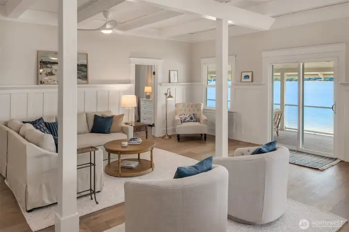 Outer Quartermaster waterfront haven! This 1907 home has been stunningly updated throughout w/ 4 bedrooms & 2 bathrooms. The open main level beam ceilings, hardwood floors with an open living room & large kitchen w/stainless appliances. Through the waterfront doors, enjoy never-ending harbor views from covered porch or private view balcony. Easy beach access via bulkhead & stairs to the waters edge. Permitted moorage. Minutes to the Tacoma ferry. Enjoy boating, paddleboarding, kayaking, fishing, crabbing, and by night, the Tacoma city lights. The like new 2-car garage has a loft; perfect for office/shop. Basement studio. Courtyard garden, RV space. Vashon Paradise!