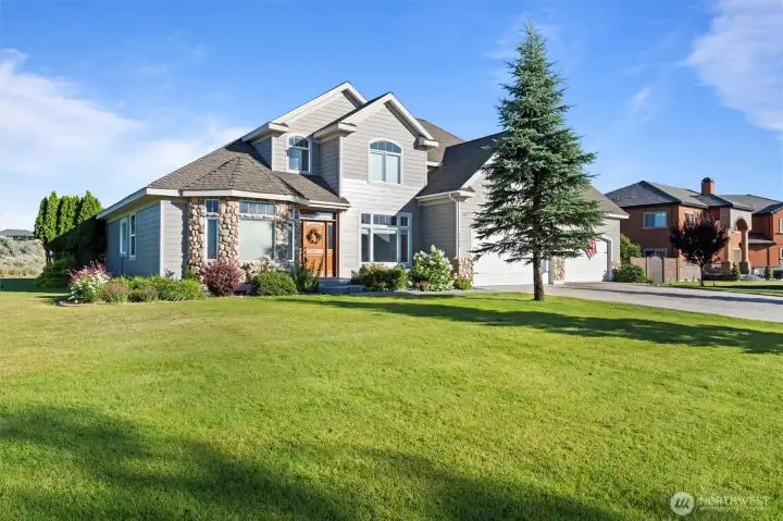 Gorgeous custom two-story home with a four-car garage in the highly desirable Dune Lakes community. Located in a secluded neighborhood with minimal traffic, residents enjoy access to a private park, exclusive lake access, and a private community boat launch. This beautifully maintained home offers 5 bedrooms and 3 bathrooms with mountain and lake views from the front of the home. The spacious primary suite features a fully renovated bathroom (2021) with heated floors, creating a relaxing retreat. Upstairs includes a versatile entertainment area, two bedrooms, a full bathroom with double sinks, and a large office with a closet—ideal for working from home or additional guest space. The living and dining areas are filled with natural light, showcasing vaulted ceilings and an open layout that flows seamlessly into the kitchen. The kitchen features a large island overlooking the living room, making it perfect for gatherings and entertaining. The home was professionally redesigned in 2022, including new paint, updated lighting, and refreshed styling throughout. Outside, enjoy a beautifully landscaped half-acre backyard featuring a fenced garden, reservoir views, and stunning sunrises, creating the perfect setting to enjoy the surrounding nature. Experience the Dune Lakes lifestyle with private lake access, a gated community boat launch and park, and scenic views.