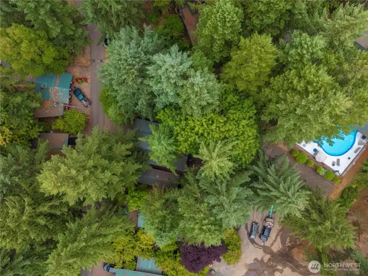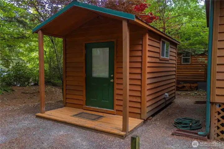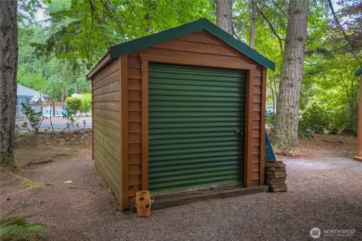 For summertime or all the time, this woodsy getaway offers the appeal of vacation-style, rural living w/ easy access to city conveniences! Offering a rare, premium, oversized unit w/ one HOA fee, 67 Eagle has a cozy cabin w/ relaxing porch & pole barn RV cover! No carpet! Recent vinyl plank floors. Lots of windows. Lush foliage. Open concept floor plan w/ living/kitchen/dining combo. Bath w/ tub. Built-in desk. TWO SHEDS! Just steps away from the indoor/outdoor pool & gym! An amazing resort community w/ a wide variety of amenities including stocked, private lake, club house, pool, hot tub, gym, pickle ball courts, hiking trails, Rainier view & more… Bring your toys! Kayaks, paddle boards, fishing poles, golf carts, electric bikes welcome.