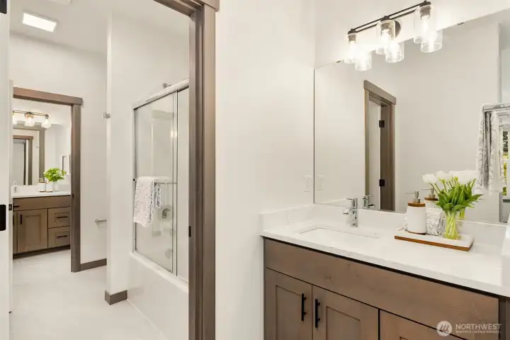 Rare Opportunity for spacious new home in the heart of Bothell! Welcome to VERDE PLACE by Hann Homes. 2 custom designed & finely crafted side by side homes offering convenient & walkable location in a quiet & private setting backing to Tolt Trail. Just 1 mile to shopping and dining of downtown Bothell. Living is Easy in this spacious 2-story with level entry and main floor office/guest suite. Great room plan has soaring ceilings, a linear gas fireplace w/ stackstone facade & raised hearth. Chef's Kitchen has huge center island w/ quartz counters, 2 tone custom painted cabinets, leather finish granite counters and upgraded Kitchenaid appliances. The Covered patio opens to a spacious landscaped & fenced yard. Pet friendly, perfect for gardening and/or entertaining. Upper floor has roomy primary Suite with lavish Bath that features tile floors, custom shower, wide vanity & a freestanding tub. handy direct access to laundry room.. 2 bedrooms share jack & jill bath, plus spacious guest Suite that could also be Bonus Rm. 3-car tandem garage has a separate mechanical closet w/ Efficient Bryant heatpump, A/C & water heater. Builder covers all professional landscaping through Summer, 2026! Ask about special financing options including a 2-1 buydown financing starting as low as 4.0% Ideally located with easy access to I-405, Hwy 522, Bothell Parks and Burke Gilman trail. Top-rated Northshore schools and a short walk to Bothell High. Single-family living with condo convenience!