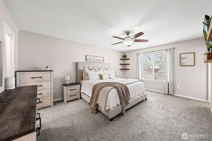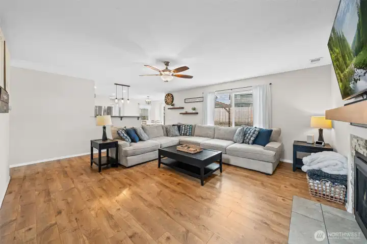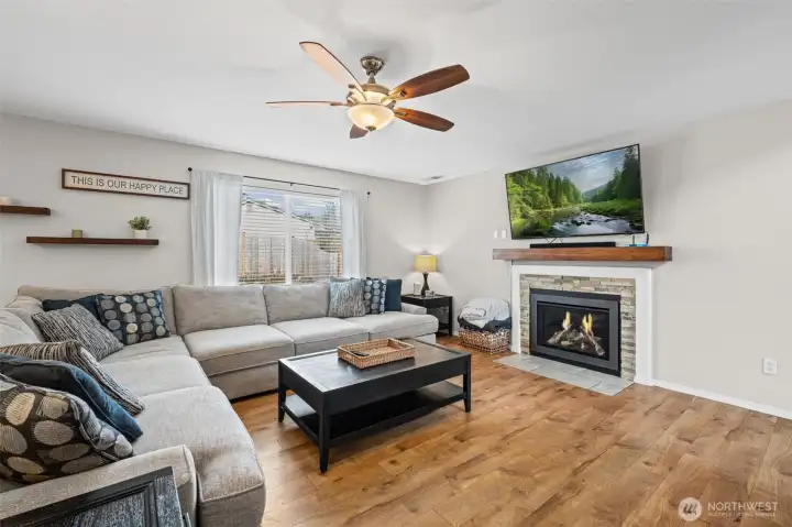 Beautifully maintained Puyallup home offering 4 bedrooms, 2.5 baths and 2,050 sq ft of comfortable living space. The updated eat-in kitchen features a pantry, newer appliances and opens to a spacious great room with a new gas fireplace and custom surround. Formal dining room off the entry and beautiful engineered hardwood floors throughout the main level. The primary suite includes a luxurious 5-piece bath and huge walk-in closet. Flexible 4th bedroom can serve as a bonus room or office. Enjoy entertaining in the fully fenced backyard with covered porch. Major updates include a newer hot water heater (2024), 5-year-old roof and furnace, newer carpet, and added outlet for EV charger. Trim lighting installed for easy holiday lights. All appliances and Ring doorbell stay. Conveniently located just minutes from the freeway, Sounder station and everyday amenities.