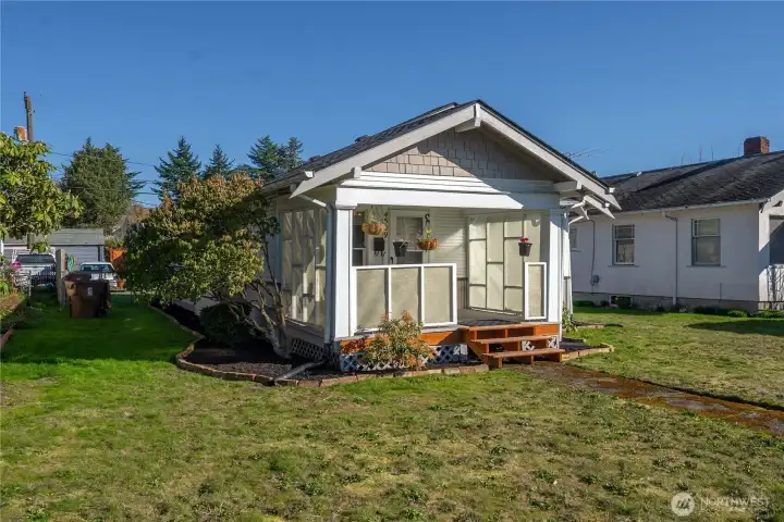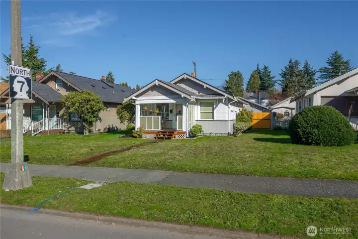 This charming Craftsman home offers timeless character paired with thoughtful updates in an exceptionally convenient location. With paved alley access, additional off-street parking, and a fully fenced backyard, the property provides both privacy and everyday functionality. Inside, the home has been carefully maintained and upgraded, featuring a newer roof, updated electrical panel, vinyl windows, and high-speed fiber internet. A top-of-the-line security system adds peace of mind, creating a comfortable and secure living environment. The backyard is a true highlight—beautifully landscaped with a paver patio that creates an inviting space for outdoor relaxation, entertaining, or quiet evenings at home. Adding even more versatility is the impressive 520-square-foot oversized garage, thoughtfully finished and painted to create the perfect space for hobbies, projects, a workshop, or a dedicated hangout area. This well-maintained Craftsman offers charm, functionality, and valuable upgrades in a location that makes daily living easy.