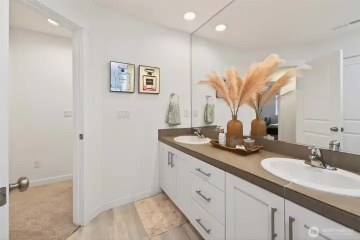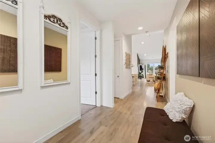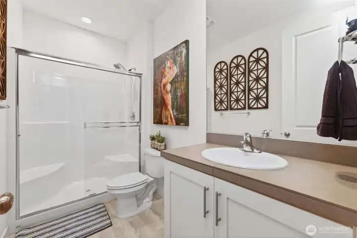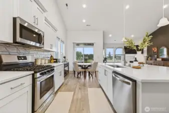 Tucked into the peaceful Ramble Creek community, this Holt Homes 2096 floor plan delivers flexibility, comfort, and stunning territorial views. The main level features 2 bedrooms and 2 full baths, including the primary suite — ideal for everyday living or multi-generational needs. Upstairs you'll find 2 additional bedrooms and a full bath, perfect for all your needs - guests, hobbies, home office, you name it. The open-concept kitchen features quartz counters, gas range, and stainless appliances flowing into a light-filled living space with fireplace and views of HOA-protected greenspace. Step onto the covered deck to enjoy quiet mornings with no direct rear neighbors. The low-maintenance backyard is ready for your vision — a tiered garden, privacy hedges, or simple landscaping. A functional 3-car tandem garage adds storage and workshop potential. Enjoy neighborhood parks and walking trails, all minutes from everyday amenities - Trader Joe's, Fred Meyer, Clark County Fairgrounds, WSU Vancouver, Legacy Salmon Creek Hospital.