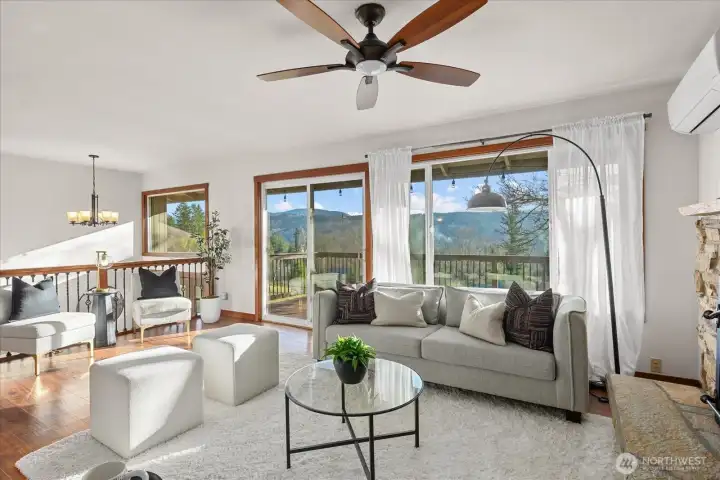 Set on 3 picturesque acres with sweeping valley and mountain views, this exceptional property offers the perfect blend of privacy, functionality, and outdoor adventure. Designed with flexibility in mind, the home features a kitchen, living area, and spacious primary suite on the main floor. A second kitchen and laundry area in the basement, with 2 additional bedrooms creates an excellent setup for multigenerational living, extended guests, or added convenience. The nearly 40x50 heated barn is a standout feature, complete with a workshop, ample storage, craft studio, animal stalls, and an upper-level ADU (where the 4th bedroom is located) formerly used as an Airbnb. The land is thoughtfully set up for animals and gardening with a loafing shed, covered feed storage, and a creek adding charm. Outdoor enthusiasts will love the direct access to the 32-mile Snoqualmie Valley Trail, making it effortless to walk, bike, or ride right from your property. Just minutes from Downtown Fall City and Snoqualmie. A rare opportunity to enjoy space, views, and versatility in a truly special setting.