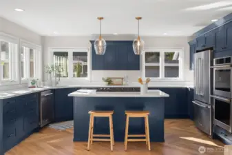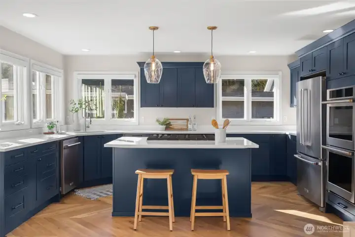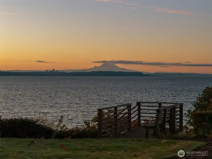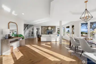 Set along coveted Marine View Drive on 2.37 private acres, this dramatically renovated Kingston residence captures sweeping views of Puget Sound and Mount Rainier with rare clarity and presence. Thoughtfully reimagined with a design-forward vision, the home blends architectural warmth with elevated, modern refinement. New white oak herringbone floors introduce texture and sophistication throughout the main living spaces, grounding the interiors with quiet luxury. Expansive windows frame water, sky, and mountain, creating an effortless connection between indoors and the surrounding Northwest landscape. The kitchen is distinctly elevated, executed with premium finishes and a restrained, tailored aesthetic. It functions as both a statement and a gathering place, equally suited to intimate evenings or larger-scale entertaining. The primary suite offers a true retreat, anchored by a spa-inspired bathroom featuring a rainfall shower that brings a sense of calm and restoration to daily life.Outdoors, the experience deepens. A private owner’s garden unfolds with curated plantings and a sculptural rock water feature, creating a serene, layered setting. The hot tub, intentionally positioned to face Mount Rainier, offers a cinematic vantage point for sunrise light and evening alpenglow. Moments from the Kingston ferry yet privately set above the Sound, this estate presents a rare synthesis of acreage, view, and design integrity. It is both retreat and statement, crafted for those who v