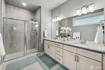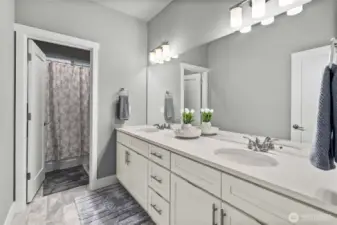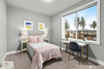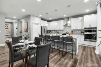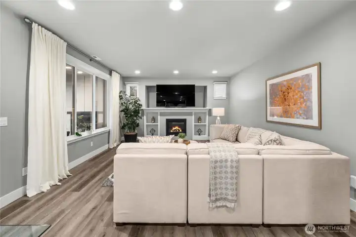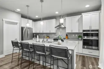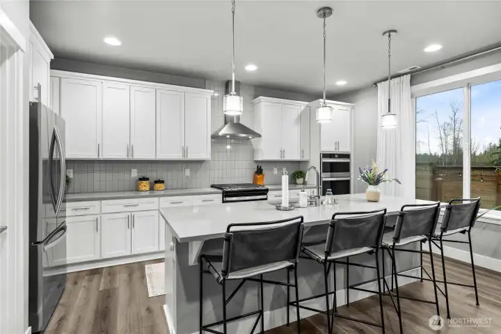 The highly desirable Cypress floorplan by Brookstone Homes is a true showstopper, offering exceptional design, thoughtful functionality, and beautiful finishes throughout. This well-designed home features a main-floor bedroom and full bathroom, perfect for guests, multi-generational living, or a private office. The expansive chef’s kitchen is the heart of the home and showcases an oversized island, 42” upper cabinets, full-height tile backsplash, quartz countertops, double ovens, & a sleek gas range with a modern hood vent. The kitchen flows seamlessly into the spacious open-concept living area where a gas fireplace with built-in entertainment center creates a warm and inviting gathering space. Upstairs, the impressive owner’s suite provides a relaxing retreat along with a spacious loft offering flexible space for a media room, office, or additional living area. Designer details throughout include full wood-wrapped windows & carefully selected finishes that elevate the home’s overall feel. Outdoor living is just as inviting with a covered patio featuring its own outdoor gas fireplace, perfect for year-round enjoyment & entertaining. Smart home features include CAT6 wiring, Nest thermostat with central A/C, & electric vehicle plug-in capability. Located on a greenbelt lot on a Cul-de-sac. Located in the highly sought-after Tehaleh community, residents enjoy access to more than 30 miles of parks and scenic trails along with the award-winning Sumner-Bonney Lake School District.