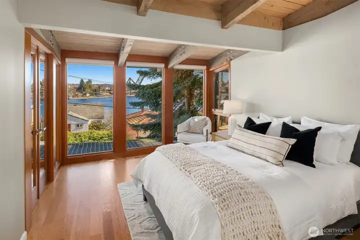 Your in-city oasis awaits. A sophisticated blend of mid-century cool & impeccable upgrades. Wide open living spaces, enhanced by vaulted, beamed ceilings & walls of windows take in views of the Cascades, sparkling Salmon Bay & the Locks - entertaining views of watercraft, eagles, heron & sea lions. Recent renovations bring it all together – fully upgraded exterior envelope complements the interior remodel. Lovely kitchen w/custom cabinets & granite counters flows to your summer hang-out deck, featuring architectural steel & Tigerwood decking. Inspired primary suite renovation with en-suite BA & custom closets. Two additional main floor BRs share impeccably remodeled full bath. Fully loaded lower level boasts a large media rm and entertainers’ kitchenette area with direct access to yard. The patio with firepit & water-feature might just be your favorite place to relax this summer. 4thBR w/adjacent BA, perfect for guests/home office and tidy laundry w/custom storage. Roomy 2 car garage. Enjoy adventures on the daily in this very special location - just minutes to Discovery Park, the Locks & Fisherman’s Terminal. EZ access to Magnolia Village, Ballard, SLU & Downtown.