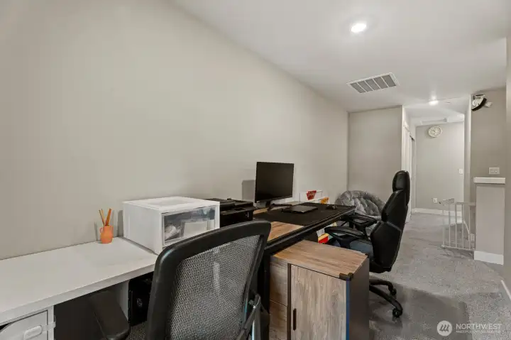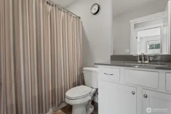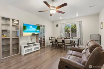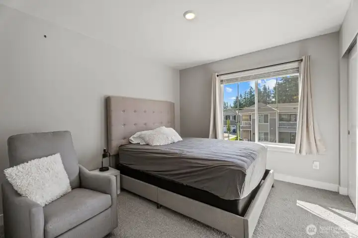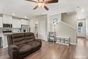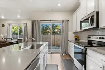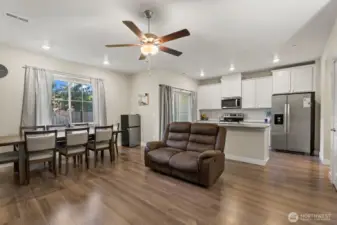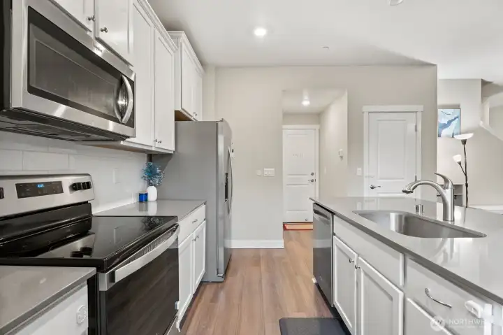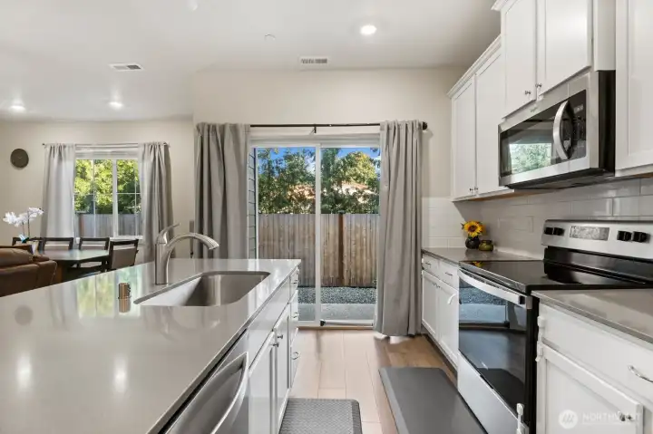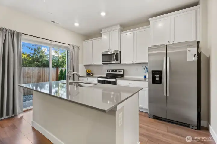 Only 2 years old and still under builder warranty! This beautifully maintained home features a gourmet kitchen with quartz countertops, a large island with breakfast bar, stainless steel appliances, and modern plank flooring throughout. The open-concept main floor flows to the covered back patio—perfect for entertaining! Upstairs includes a flexible loft space, great for an office or playroom. The spacious primary suite offers a walk-in closet and spa-inspired ensuite with glass shower and dual-sink vanity. Efficient heating and central AC for year round comfort. Located on a quiet dead-end street just steps from the community park, dog park, and basketball court. Easy, low-maintenance living in the highly rated Lake Stevens School District!