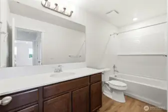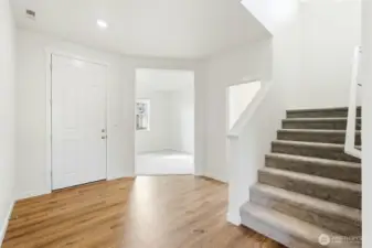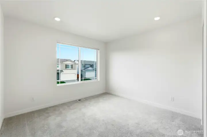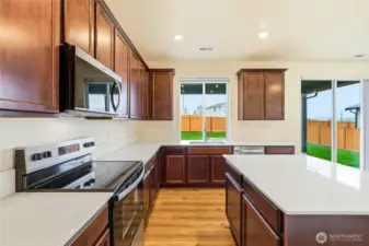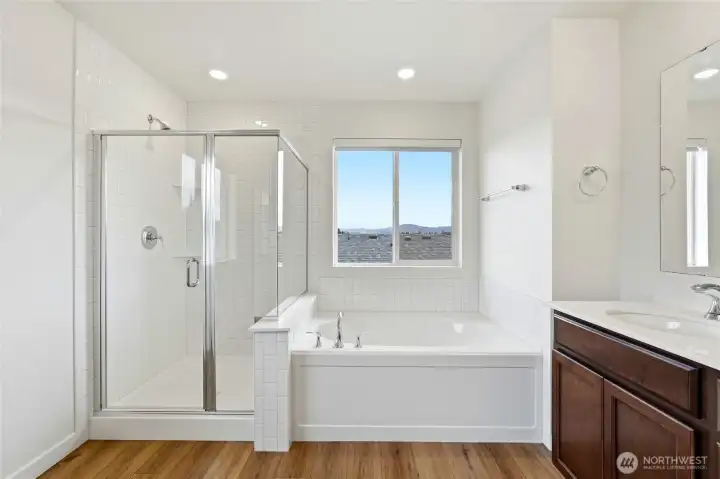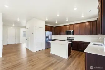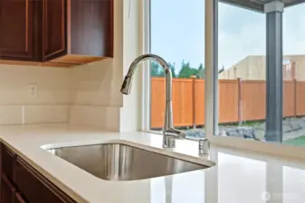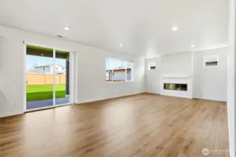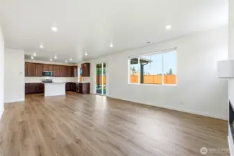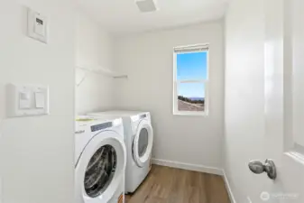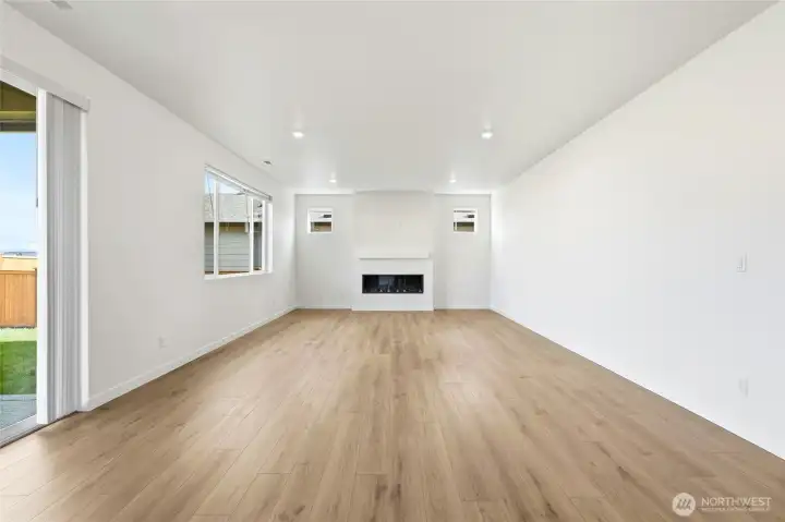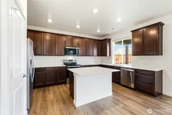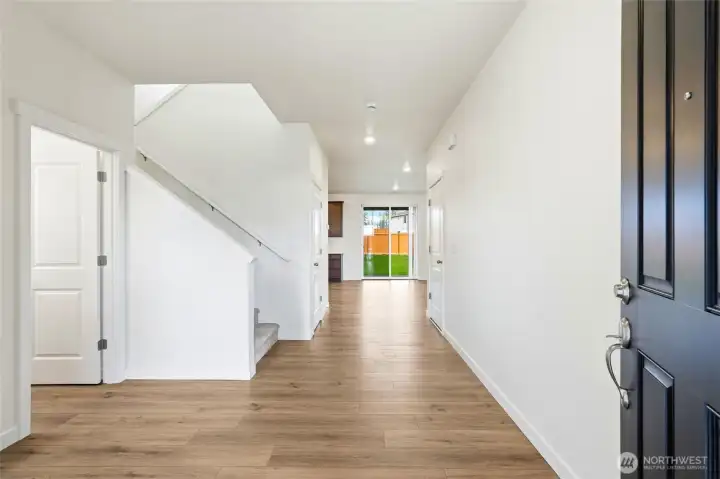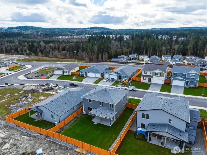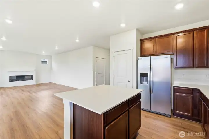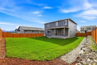 This stunning two-story home features an open-concept layout with 9-ft ceilings on the main floor, luxury vinyl plank flooring, and a spacious great room with a cozy fireplace. The modern kitchen offers 42-in. upper cabinets, a large island, stainless steel appliances, and quartz countertops. A private den provides the perfect space for a home office. Upstairs, a versatile loft can be used as a play area, media space, or exercise room. The primary suite offers a relaxing retreat with a generous walk-in closet and a spa-inspired bath featuring a dual-sink vanity, soaking tub, & separate shower. Enjoy outdoor living on the extended covered patio overlooking the landscaped and fully fenced backyard. Beautiful new construction with a fully fenced big back yard. Mountain view. Excellent location! Welcome Home!