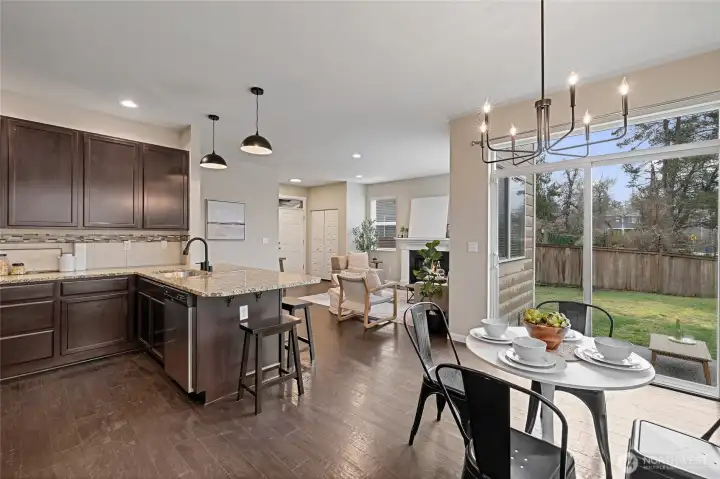 Discover easy living in this 3-bed + loft home, in desirable Edmonds School District. Inside, you will find an inviting modern open layout with good natural light and 9 foot ceilings on the main floor. Open concept family/dining/kitchen with Gas fireplace. Kitchen features tons of storage, granite counters & new fixtures. Hand scraped wood floors on main level. All new carpet & fresh paint throughout the house! Good sized patio with fully fenced yard, perfect for relaxing or entertaining. Upstairs, there is a large primary suite with dual sinks, separate tub/shower and large walk in closet. New lighting in all the bathrooms. Two additional bedrooms plus full bath. The loft area could be a play space, home office, additional living space- flexible! Close to Eastside / Seattle commuting options-including new Lynnwood Light Rail Station (2.8 miles away) & nearby schools/parks. Easy to navigate neighborhood, cul de sac location, local park area just down the street. Open houses Friday, Saturday & Sunday!