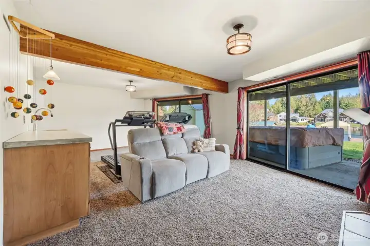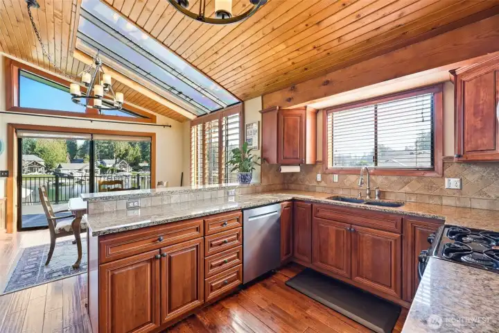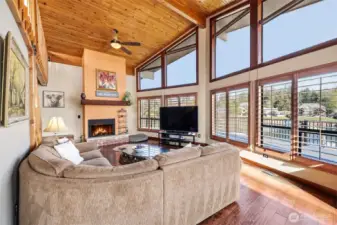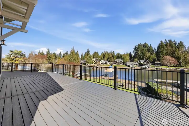Stunning Lake Tapps waterfront home offering approximately 3,144 square feet with breathtaking views of Mt. Rainier. This thoughtfully designed residence features 5 bedrooms, including a main-floor primary suite and a secondary bedroom or office. The primary suite opens directly to an expansive newly resurfaced 700-square-foot deck, creating the perfect place to relax while enjoying sweeping lake and mountain views. Inside, the home showcases extensive hardwood flooring, dramatic 18-foot tongue-and-groove cedar ceilings, wood-wrapped tinted windows, and plantation shutters that add warmth and character throughout. The kitchen features slab granite countertops, custom cabinetry, and stainless steel appliances, flowing seamlessly into the main living areas designed for both everyday living and entertaining. A spacious loft with panoramic lake and mountain views offers flexible living space. Additional highlights include a newer roof, central vacuum system, security system, and abundant storage. The detached 2+ car garage/shop includes additional storage above, providing excellent space for hobbies, equipment, or lake toys. Also, the home offers a 10KW Generac generator. Outdoor living is exceptional with a large entertaining deck, hot tub, fire pit, RV carport, boat parking, and a high-end U-shaped dockâcreating the ultimate Lake Tapps waterfront lifestyle.