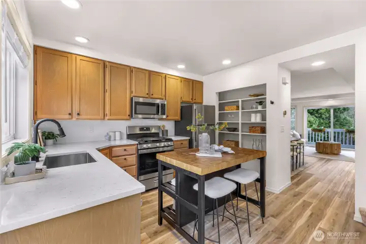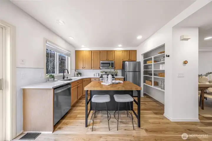 Stylish and turn-key Crown Hill townhome full of natural light and well-designed spaces. This lovely 3 bedroom, 2 full bath home is thoughtfully designed to maximize space without sacrificing function. The timeless kitchen boasts ample cabinetry and a generous pantry for all your culinary storage needs, as well as a gas range and butcher block island to suit the most discerning chef. Don’t forget the sunny south-facing deck to grow your herbs and vegetables! Invite all your friends for unforgettable dinner parties or to cheer on your favorite teams in the spacious living room and dining room. Convenience is paramount in the layout, with a huge primary bedroom + walk-in-closet, sweet second bedroom, as well as laundry, all on the upper level. A private bedroom on the lower level makes an excellent guest room or quiet office space. Incredibly hard to find in townhomes, enjoy a large garage with straight-in access AND wonderful backyard and patio space to round out the perfect place to call home. Located with easy access to Swanson's Nursery, Blue Ridge Coffee House, Metropolitan Market, Soundview Playfield, Carkeek Park, public transit, and many delicious restaurants and local shops. No HOA! Your future in Crown Hill awaits!