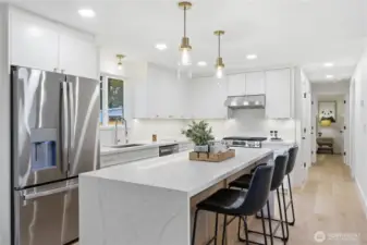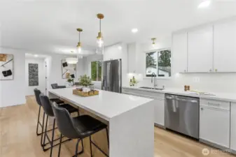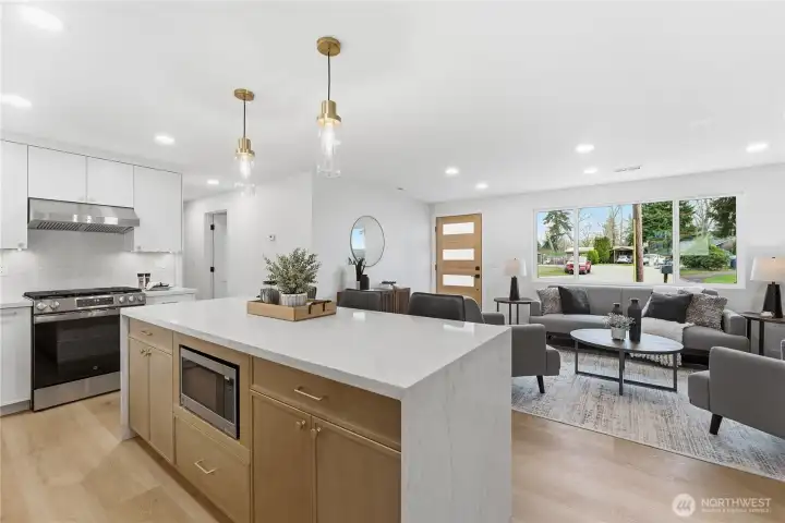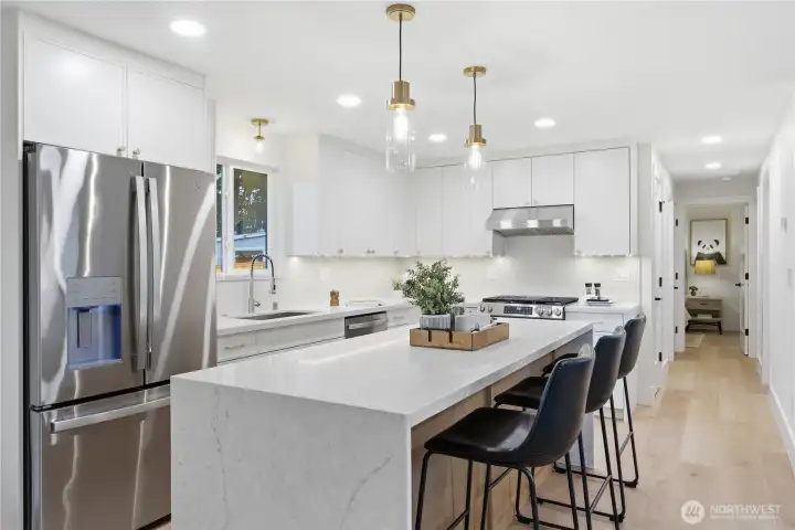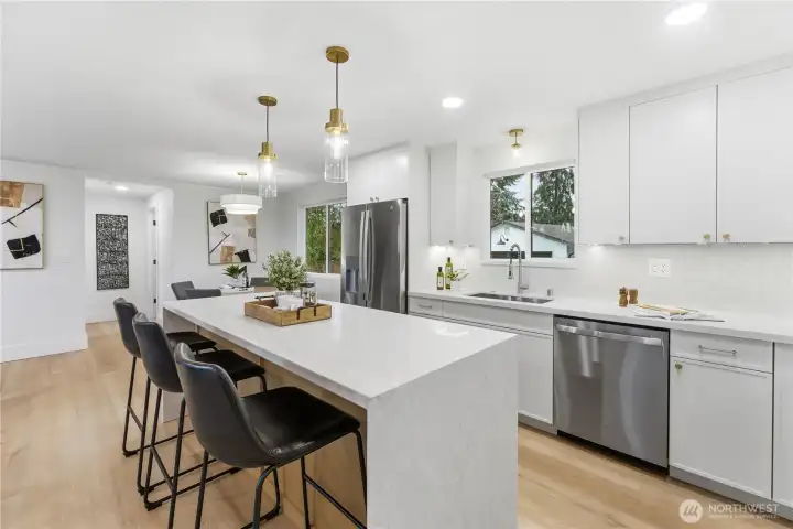 Welcome to this beautifully remodeled, fully permitted 4-bd, 1.75-bth home in the highly desirable Twin Lakes neighborhood of Federal Way. This beautifully updated residence blends modern luxury finishes w/ thoughtful design, including a separate primary suite w/ private en-suite bath, perfectly positioned apart from the additional bedrooms for comfort and privacy. Step inside to discover a bright, open layout with high-end finishes throughout—featuring a chef-inspired kitchen with all brand-new, high-end appliances, premium fixtures, and designer details that elevate every space. The renovation thoughtfully finished previously unfinished square footage and added a second bathroom, expanding both style and functionality. Major system upgrades include a new electrical panel, new windows, newer roof, and updated heating and plumbing systems, offering peace of mind for years to come. Outdoors, enjoy a large, private 8,588sq/ft lot ideal for play, gardening, or future outdoor living enhancements. A rare 480 sq ft detached garage offers abundant storage or workshop potential, and the long driveway provides plenty of room for extra parking, toys, or recreational vehicles, w/ space to add a shed or backyard studio. Located in the desirable Twin Lakes community, residents enjoy easy access to parks, schools, lakes, & outdoor recreation, with shopping and dining nearby. Just minutes to the Downtown Federal Way Light Rail station & Dash Point State Park. Pre-inspected and ready to go!