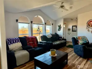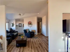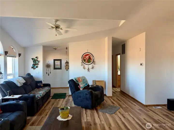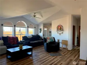 Bright, well maintained 3 bedroom, 2 bathroom home in a location that delivers lifestyle and convenience. New flooring throughout complements the open concept living space, while large windows bring in beautiful natural light. Beautiful wood bar in the bright kitchen. Features include privacy fencing, storage shed, an attached oversized two car garage, and a spacious primary suite with a California walk in closet, walk in jetted tub, and separate walk in shower. Great floor plan that places the primary bedroom on one end of the home and the additional bedrooms and main bath on the other. Enjoy golf course views just across the street and quick access to Lake Roosevelt for boating, fishing, and endless outdoor recreation. in ready and ideal for full time living, a weekend getaway, or a strong investment opportunity.