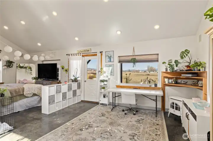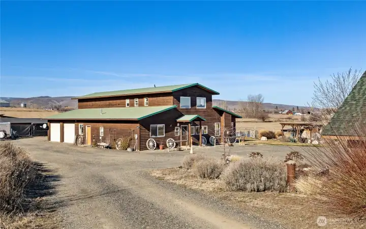 You won't want to leave the setting of this custom owner-built home on 4.73 irrigated acres with stunning valley & mountain views in a desirable west side location. The 4 bedrooms/3 bath home offers 2,570 sq ft with a primary & 2nd bedroom on the main floor for convenient living. Wood accent walls & T&G ceilings, & a rock-surround fireplace adorn the main living areas creating a feel of the NW country. Durable tile and vinyl plank flooring throughout provide both style and easy maintenance. The 2nd level reveals a bonus room, 2 large bedrooms, & full bath. A very useful separate 560 sq ft fully-oufitted studio with a bathroom & laundry offers excellent potential for guests, rental income, home office, or creative space. The property is well suited for animals or hobby farming with pasture, outbuildings, and animal shelters. So if you want a place where you can pause & take in deep breath of that fresh country air while overlooking the open valley & surrounding hills, then welcome home! Enjoy the peaceful country living with room to spread out on this dead-end-road location, while still being close to town.