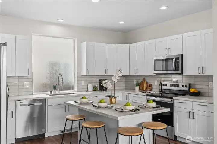 Beautifully maintained & updated, this Crosswater home lives like a single-family with a private fenced backyard, low-maintenance outdoor space & patio with firepit for easy entertaining, plus a 2-car garage. Move-in ready with a permitted upstairs addition, central A/C & a refreshed interior that makes the value feel immediate. Big-ticket updates already done for you include a 2024 gas furnace + central air, 2022 water heater, plus newer paint, flooring & carpet. The fully renovated 2024 kitchen is a standout with new cabinets, quartz countertops, stainless appliances & a center island with eating bar. The main level offers a front living & dining area plus an open kitchen & living room anchored by a cozy dual-sided gas fireplace, great for daily flow & entertaining. The custom upstairs layout offers 3 bedrooms, 2 full baths & convenient laundry. Two bedrooms are ensuite-style, including a roomy second suite with WIC & a full bath offering bedroom + hallway access. The spacious primary suite includes an updated 5-piece bath, WIC & attached flex space perfect for a work-from-home office, nursery, or workout area. Neighborhood amenities include miles of trails, tot lots & Boulder Park with open field, gazebo, playground & sport court. Minutes to Lundeen Park on Lake Stevens, plus shopping, dining & new nearby conveniences. Easy commuter routes via Hwy 9 with connections to US 2 and I-5. Desirable Lake Stevens schools support long-term value & future resale.