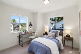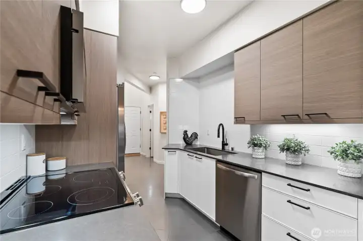 Come see this recently completed, fully renovated, model home at Fitzgerald Commons. This is the final home for sale in the community and features an amazing circular layout on the main floor with an open great room that has southwest facing, double-height windows. You'll love to entertain from the galley style kitchen with slab countertops, stainless steel appliances, and fully tiled backsplash adjacent to the open dining area and private patio. Upper floor features an open loft area perfect for a home office or cozy reading area along with a large primary suite with walk-in closet and fully tiled shower. Two additional large bedrooms with great closets and additional storage in the hallway. Designer finishes are tasteful and timeless rather than trendy gives a feeling of warmth and comfort. 2 car attached private garage with dedicated 3rd parking stall and side yard that can accommodate an additional storage shed or even a boat or RV which is unheard of for a townhome. Full sized laundry room with cabinets and folding shelf, guest powder bathroom, and fully fenced backyard patio that is perfect for pets, play area, and year-round grilling. Located in highly desirable North Creek minutes to 405 with easy drive to Bellevue, Kirkland, Redmond, UW Bothell, and Woodinville Costco that avoids much of the worst north end traffic. Full condominium conversion by trusted and respected local builder for over 42 years, WestTier Homes. FHA/VA eligible. Builder warranty included.
