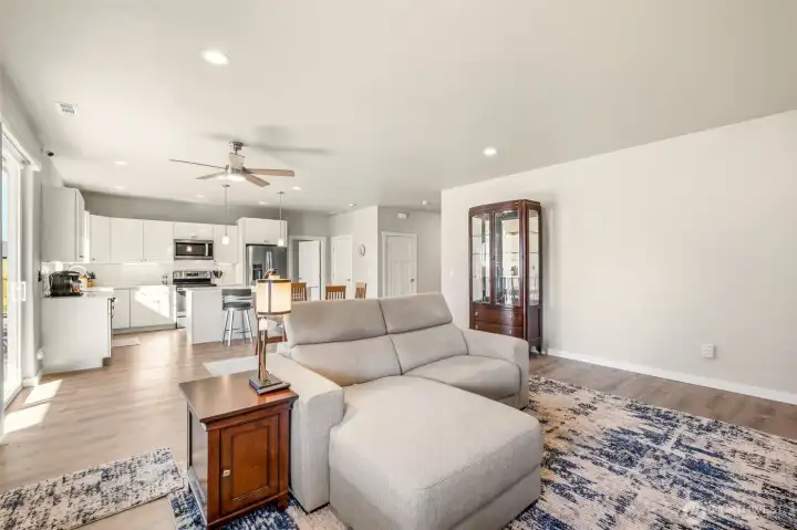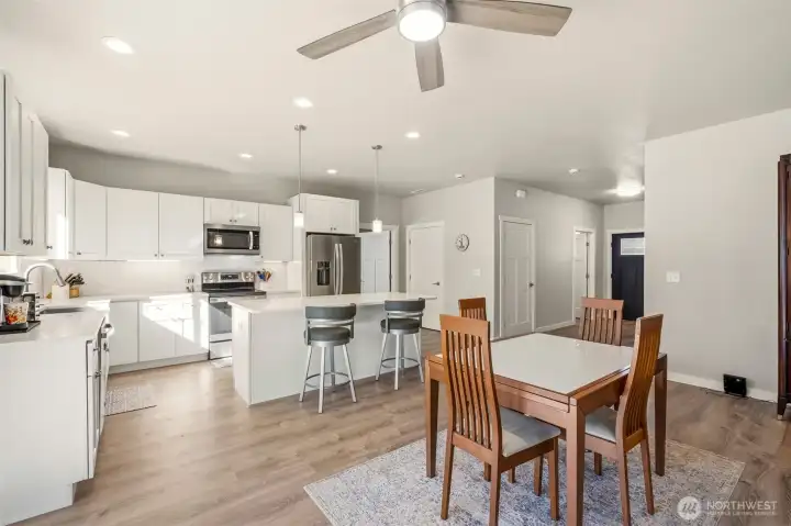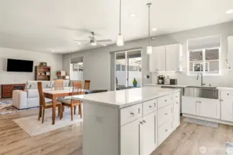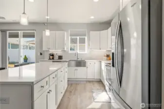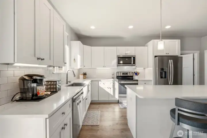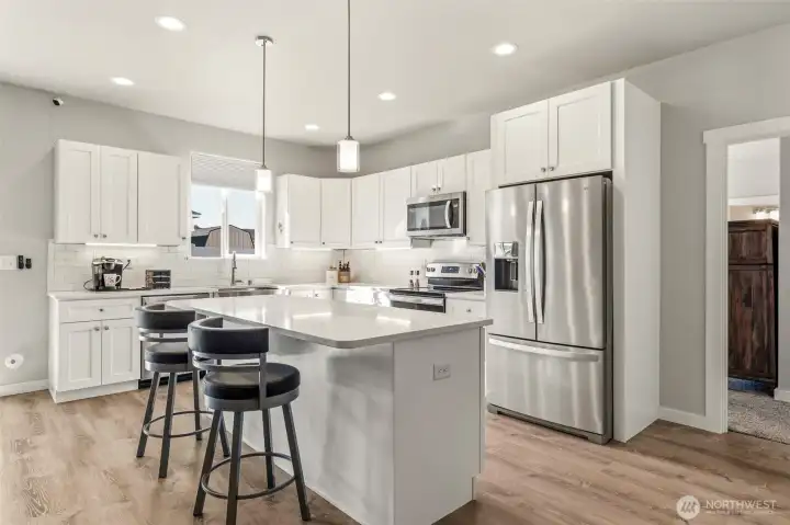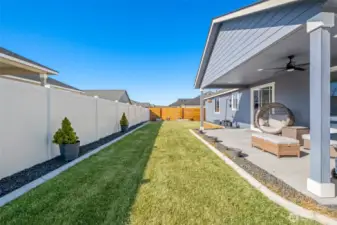 Don't miss the chance to purchase this home. Seller is offering $10,000 in buyer loan closing fees/interest buy down. Welcoming front entrance, curb appeal with stone accents. Open concept with the kitchen and living room, great workspace and a HUGE walk-in pantry! Great natural light, sliding glass door to the covered patio. This lot has extra parking on the side of the house and a fenced yard with underground sprinkler system and garden boxes. Primary bathroom with walk in tile shower, stand alone tub, double vanity and walk-in closet. 9' ceilings throughout, quality cabinets, quartz countertops throughout, full tile backsplashes, under cabinet lighting and lots of custom features. Home has an ADT security system.